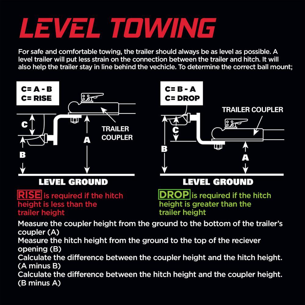 The TowSmart Forged Ball Mount is ideal for towing heavy duty trailers and are mostly used with full-size pickups, SUVs, flatbeds and other commercial trucks. It features a solid, forged steel design providing you with ultimate strength when towing your cargo. The weld free, heavy-duty steel construction is extremely durable with a black powder coat finish that is corrosion resistant and provides superior protection from the outdoor elements. The Forged Ball Mount can be used in either the drop or rise position depending on your requirement when towing. They feature a 2 in. x 2 in. shank with an impressive high towing capacity. It is important to know the total weight of the trailer (GTW) you are towing and the maximum towing capacity determined by the vehicle manufacturer.
