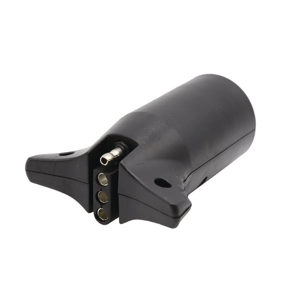 The TowSmart Electrical Adapter is the quickest and easiest way to make electrical connections when hauling a trailer that has a different wiring configuration than the vehicle. The single housing design plugs in your vehicles electrical socket and requires no wiring. This adapter is ideal for trailers that require a 4-way flat connection but have a 7-way blade towing vehicle. The adapter connects tail lights, brake lights, turn signals and reverse lights. It provides an ergonomic, durable plastic construction that is corrosion resistant to withstand harsh weather conditions. For the safest towing, ensure all functions are properly equipped.