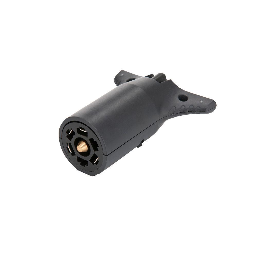 The TowSmart Electrical Adapter is the quickest and easiest way to make electrical connections when hauling a trailer that has a different wiring configuration than the vehicle. The single housing design plugs in your vehicles electrical socket and requires no wiring. This adapter is ideal for trailers that require a 5-way flat connection but have a 7-way blade towing vehicle. The adapter connects tail lights, brake lights, turn signals and reverse lights. It provides an ergonomic, durable plastic construction that is corrosion resistant to withstand harsh weather conditions. For the safest towing, ensure all functions are properly equipped.