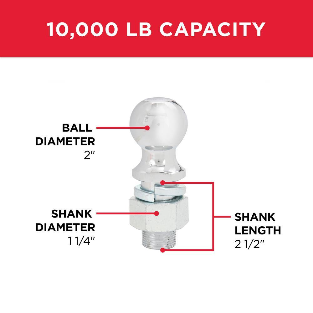 TowSmart 10,000 lb. Capacity 2 in. Ball x 1-1/4 in. Shank Diameter x 2-1/2 in. Shank Length Chrome Hitch Ball
