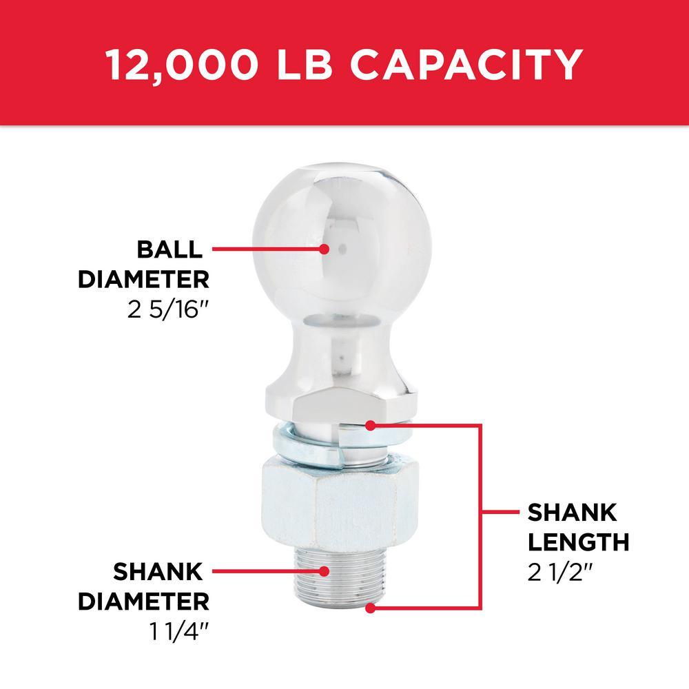 TowSmart 12,000 lb. Capacity 2-5/16 in. Ball x 1-1/4 in. Shank Diameter x 2-1/2 in. Shank Length Chrome Hitch Ball