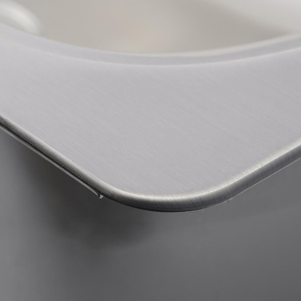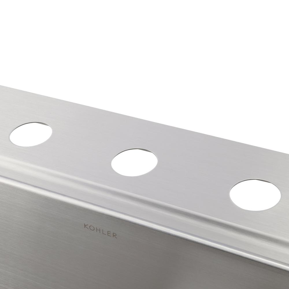 Blending with a variety of kitchen styles, this Verse stainless-steel sink offers a wide, deep bowl for ample workspace. The low-profile rim simplifies cleanup, allowing you to sweep crumbs and liquid into the sink and out of sight. An engineered sound-absorption system significantly reduces disposal and dishwashing noise for a quieter kitchen environment.