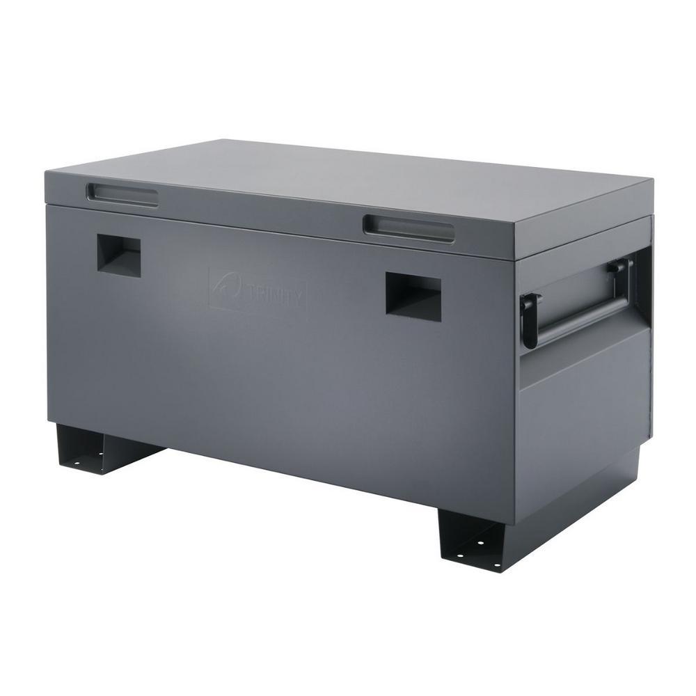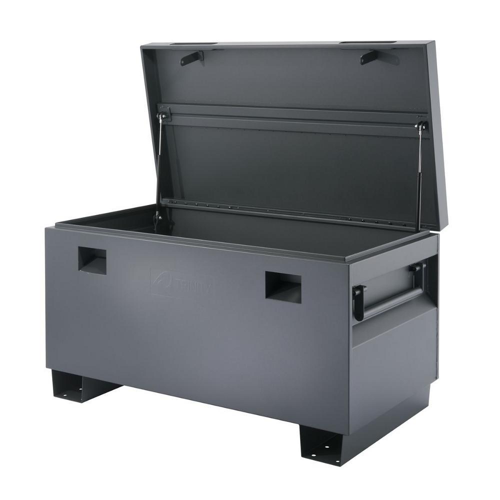 Trinity's Job Site Box is rugged enough for any job site. Available in 36 in. or 45 in. wide options, this jobsite box is made from heavily reinforced steel with a matte rust-resistant powder coated finish. This box features recessed carrying handles, a tamper-proof locking system, and gas lift(s) for easy open and close. The Box can be mounted to a truck bed, or a jobsite, and is also forklift and crane accessible. With Trinity's Job Site Box, you can be sure to keep your valuable tools from both thieves and the elements.