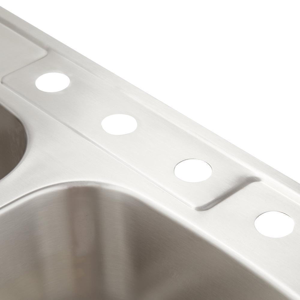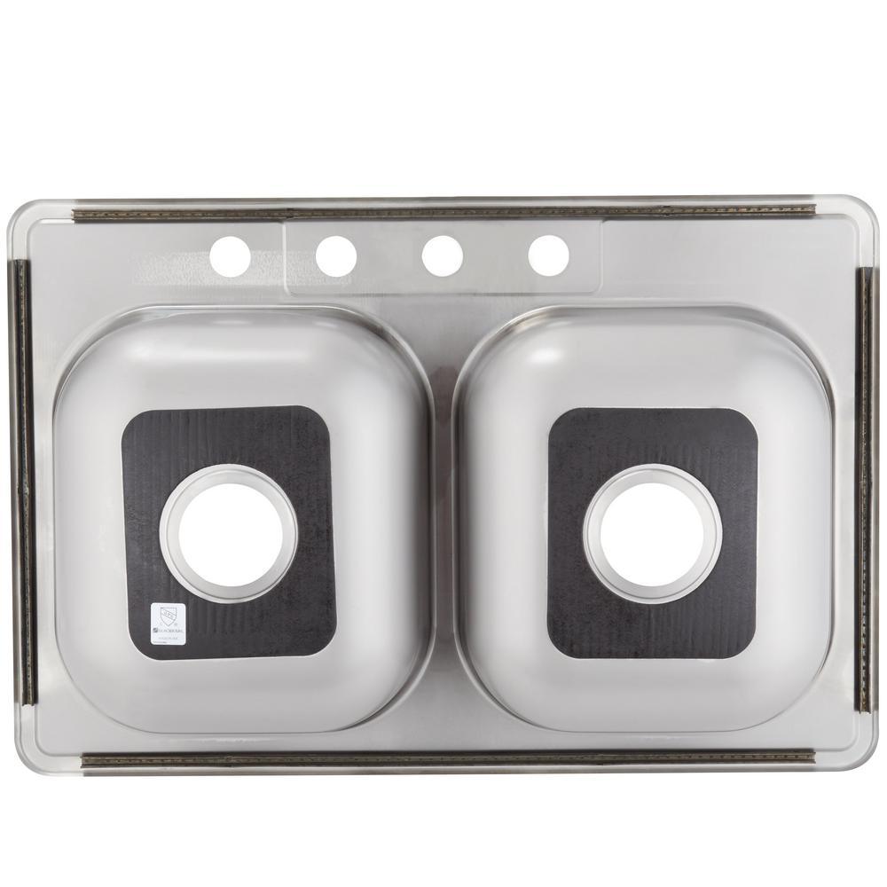 Made from high quality 22-Gauge nickel bearing stainless steel, this Drop in Double Bowl Kitchen Sink features a satin finish for added durability. Perfect for multiple kitchen styles. The double basin is designed to provide ample space. Each sink features 4 pre-drilled holes for installation of a faucet, sprayer, soap dispenser or other accessories.