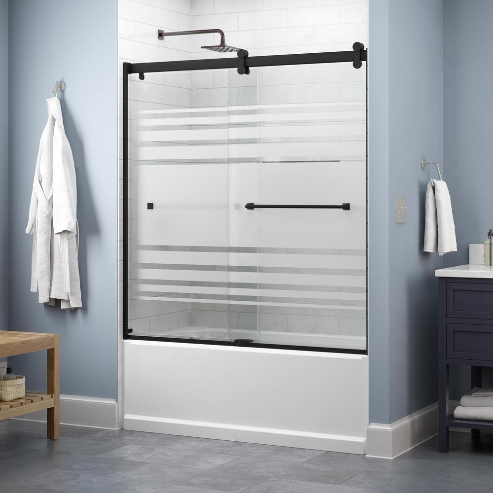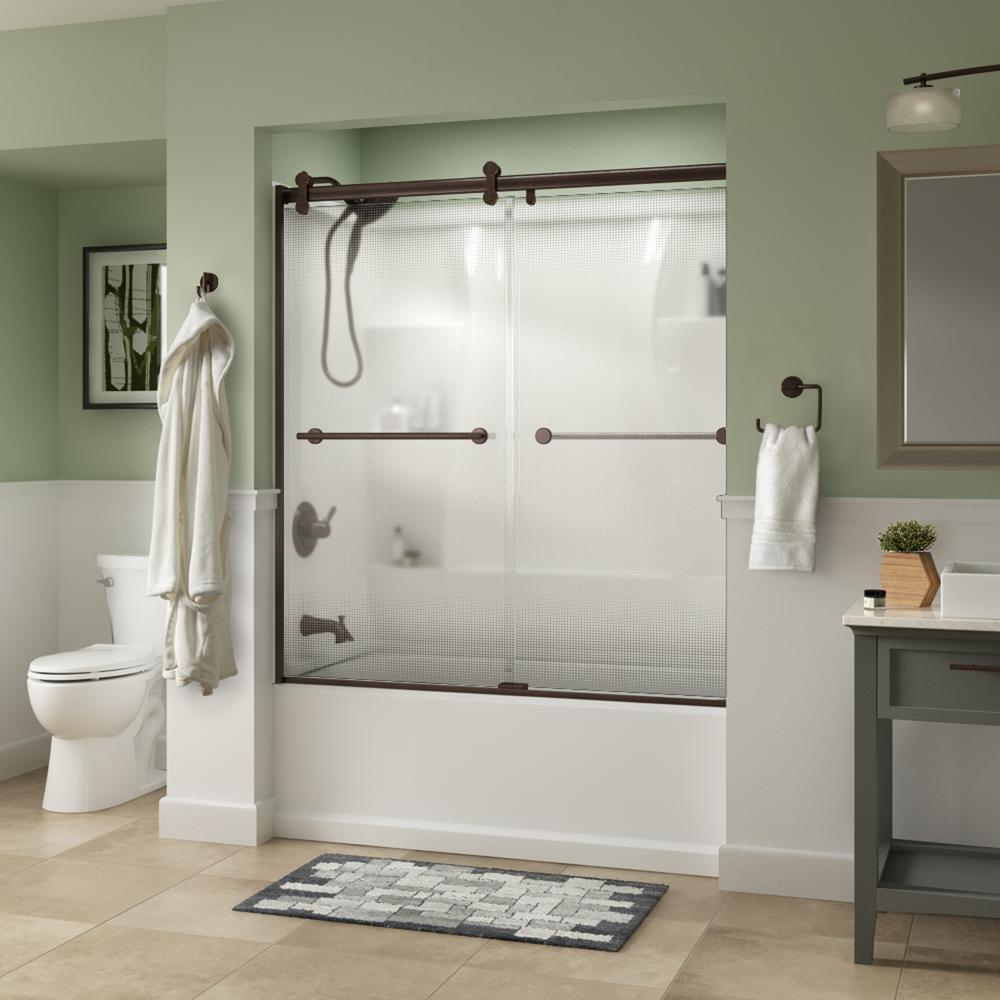 Whether you’re looking for a moderate DIY project or working on a bathroom remodel, upgrading your bathroom with a new sliding shower door is easy with the Delta 1-2-3 custom sliding shower door program. Delta’s custom glass shower door program offers 1000s of design combinations by choosing your glass shower panels, shower door track, and shower door handles to build a unique, personalized glass shower door. Inspired by the trendy barn door style, the Contemporary bathtub door track in bronze is sleek and modern with exposed rollers for the perfect balance of industrial and contemporary design. Show off your beautiful shower with standard 1/4 in. ANSI certified tempered glass shower panels, featuring Delta Spot Guard with a completely transparent look for a glass shower door that is both simple and elegant. The Lyndall sliding shower door handles in bronze feature two convenient towel bars for extra bathroom storage in a contemporary design silhouette that beautifully demonstrates simplistic, modern elegance.