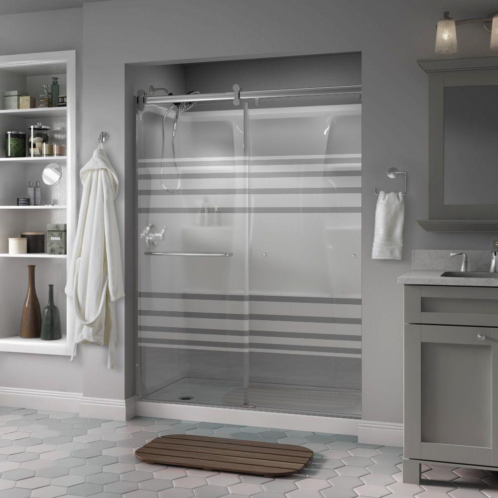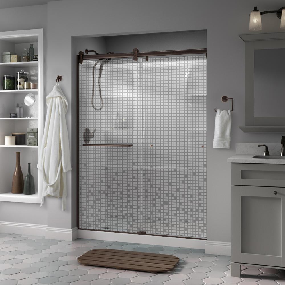 Whether you’re looking for a moderate DIY project or working on a bathroom remodel, upgrading your bathroom with a new sliding shower door is easy with the Delta 1-2-3 custom sliding shower door program. Delta’s custom glass shower door program offers 1000s of design combinations by choosing your glass shower panels, shower door track, and shower door handles to build a unique, personalized glass shower door. Inspired by the trendy barn door style, the Contemporary shower door track in bronze is sleek and modern with exposed rollers for the perfect balance of industrial and contemporary design. Show off your beautiful shower with standard 1/4 in. ANSI certified tempered glass shower panels, featuring Delta Spot Guard with a completely transparent look for a glass shower door that is both simple and elegant. The Simplicity sliding shower door handle with knobs features a convenient towel bar for extra bathroom storage and two interior knobs for extra showering space in a simple design silhouette that beautifully combines form and function.