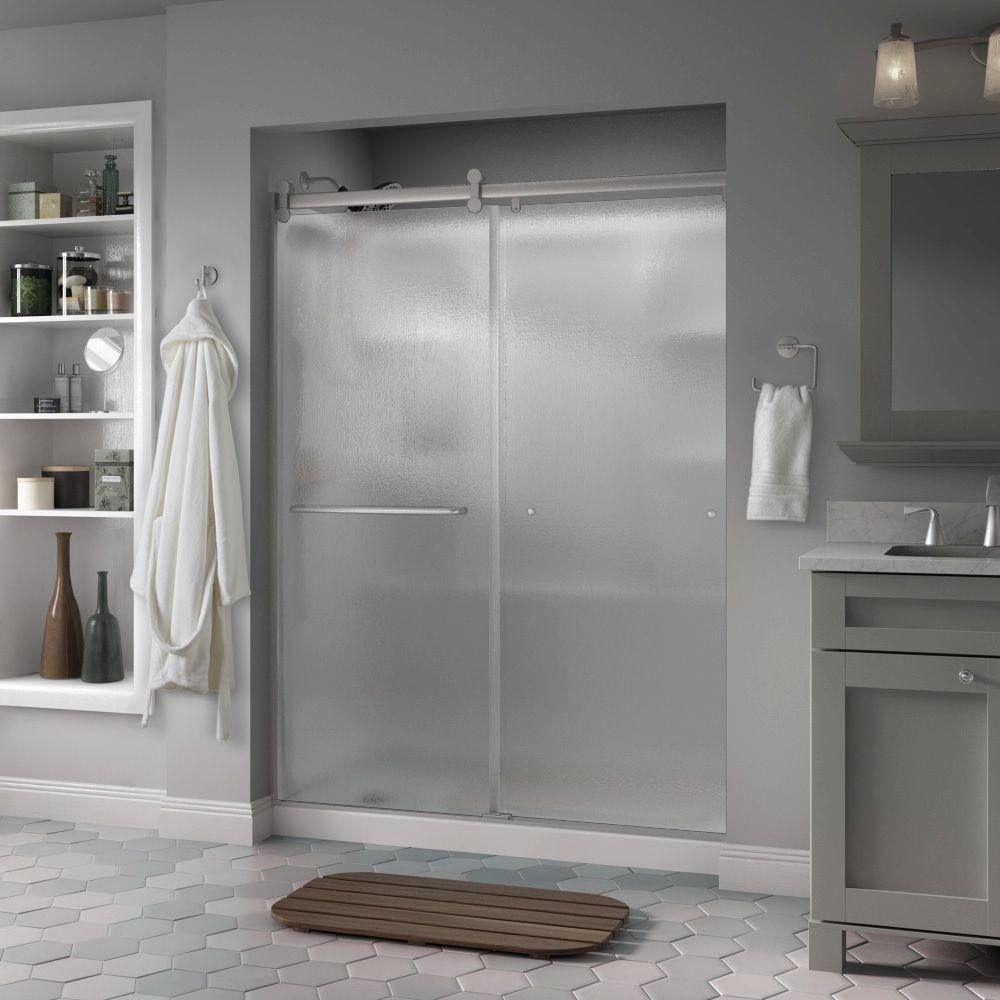 • Delta sliding glass shower panels feature Delta Spot Guard glass treatment for easy cleaning, to resist water spots and hardwater stains, and help reduce soap scum and limescale buildup when properly maintained