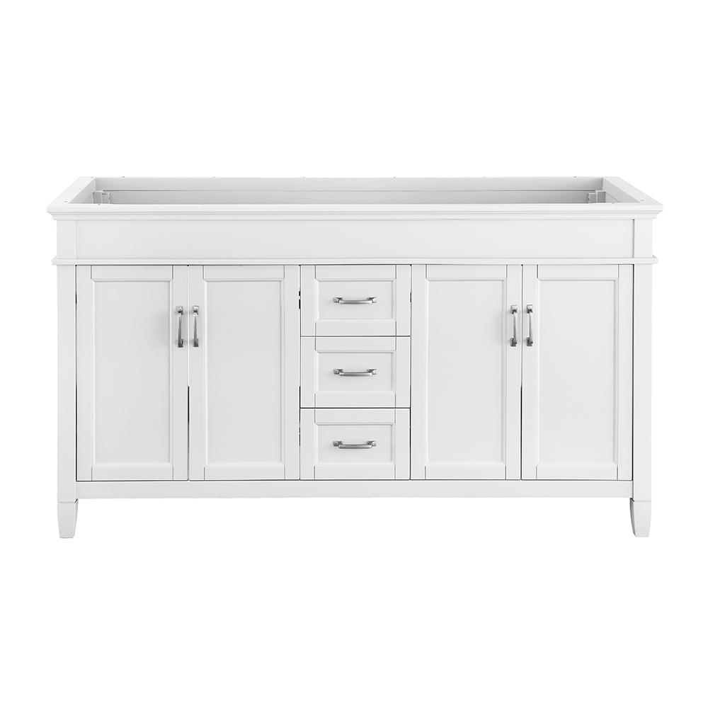 • Accommodates a 61 in. W x 22 in. D vanity top with double basins (sold separately)