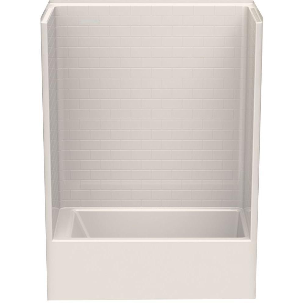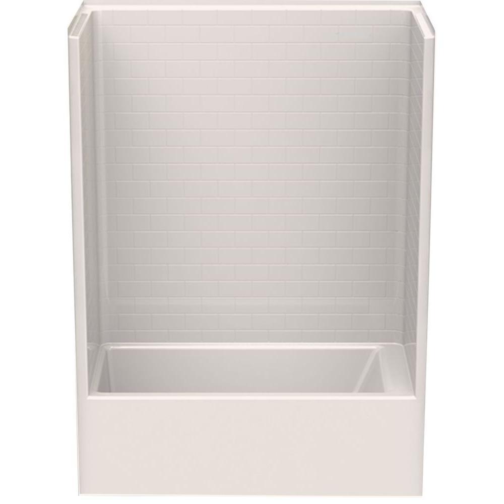 Tub-shower units combine the advantages of beauty, durability and easy maintenance in your choice of versatile designs. Enjoy the combined strengths of both tub and shower. A tub-shower allows you to save space without compromising style. This unit is crafted from an Acrylx applied -Acrylic finish reinforced with Armorcore. Our Everyday line of product now comes standard with Aquatic's exclusive ArmorCore bottom reinforcement; our newest manufacturing breakthrough. This unit features a left hand drain. This unit features a Subway tile design that is timeless; goes with both modern and traditional decor.