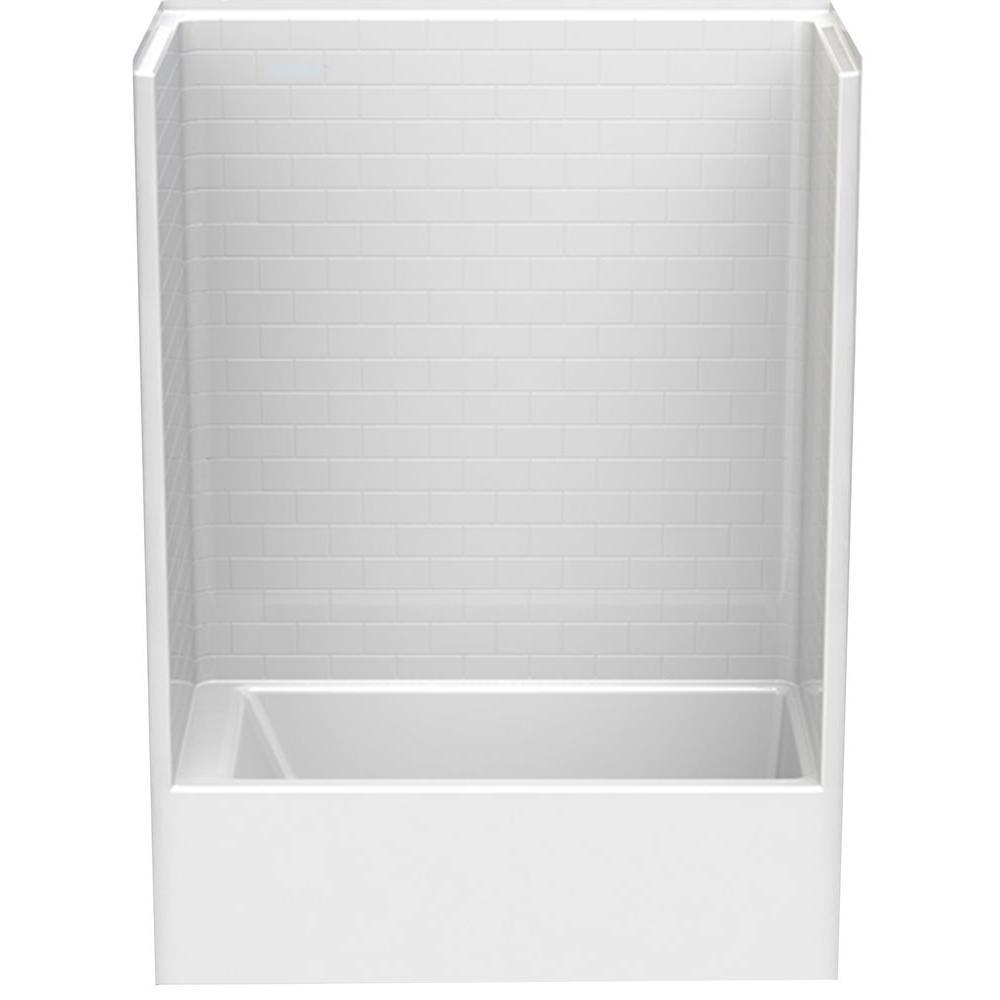 Everyday Subway Tile 60 in. x 32 in. x 80 in. 1-Piece Bath and Shower Kit with Left Drain in White