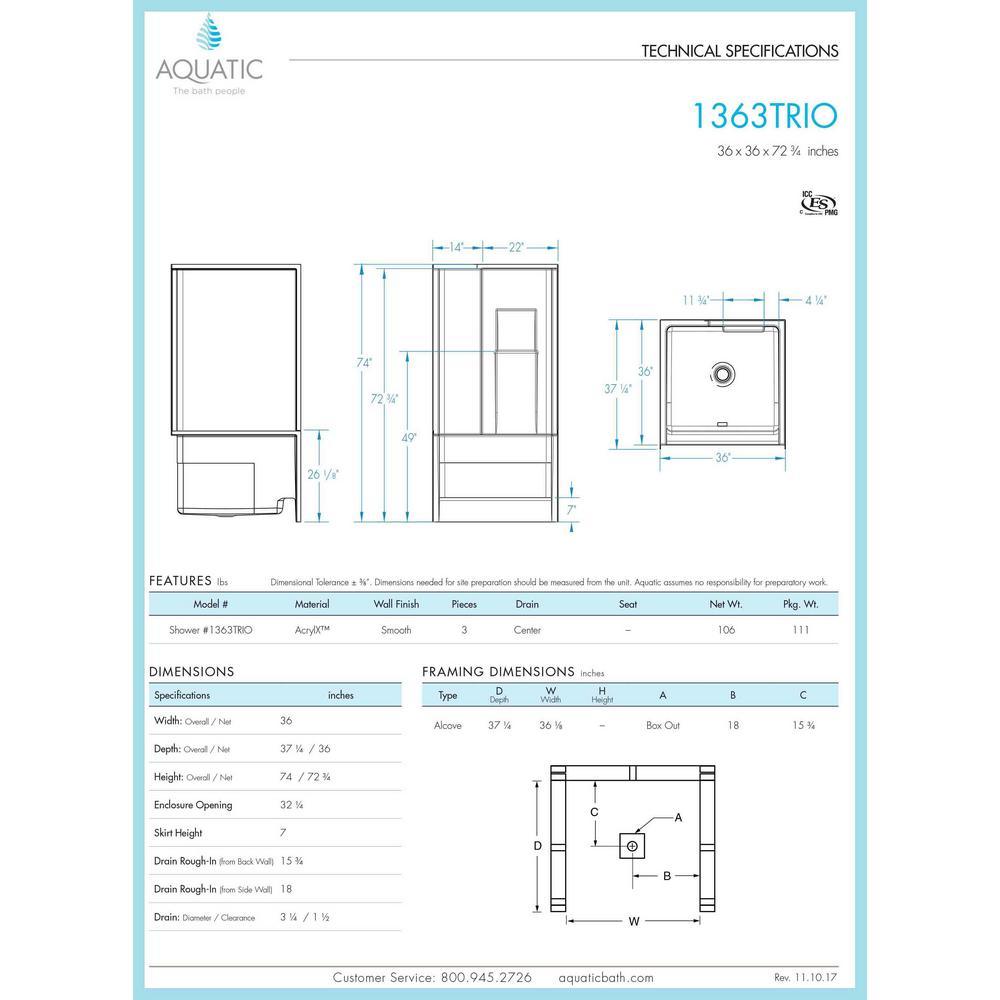 - Utilizes Aquatic’s innovative “Bathlock” front fastening system to join base to wall sections from the front of unit, making installation a snap