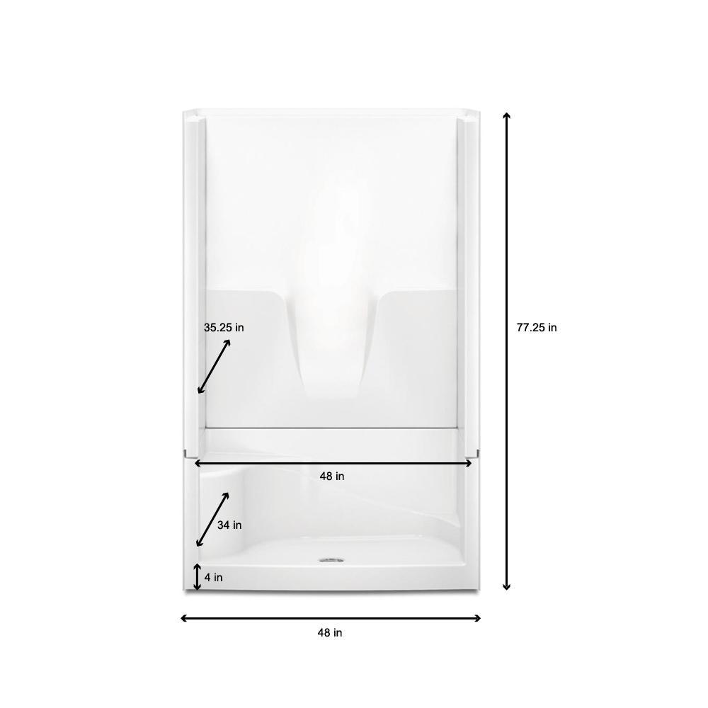 Varia 48 in. x 34 in. x 76 in. 4-Piece Shower Stall with Left Seat and Center Drain in White