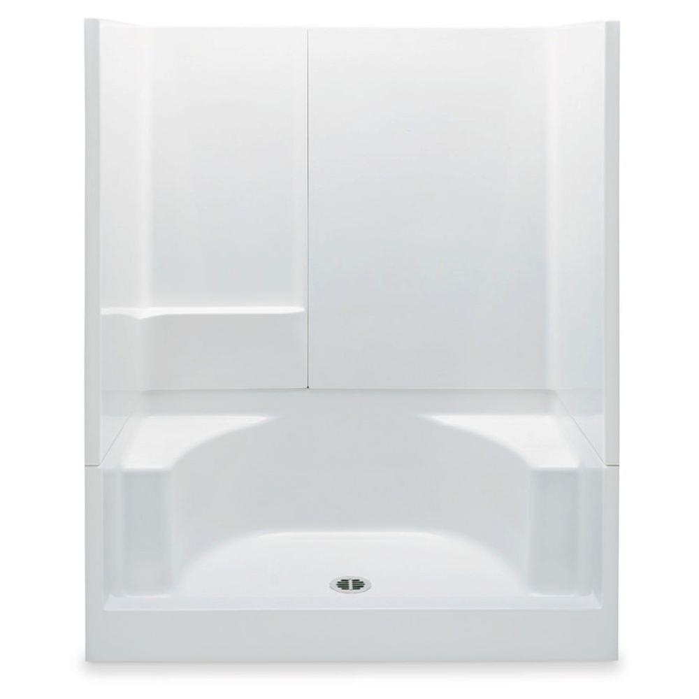 Convenience and elegance blend seamlessly in every Varia product. Ideal for remodeling projects, or applications where space is limited, Aquatic sectional products offer an easy to install and attractive bath solution. Our Varia products offer a front fastening system for ease of installation. This unit is crafted from an Acrylx applied -Acrylic finish reinforced with Armorcore. Our Varia products now come standard with Aquatic's exclusive ArmorCore bottom reinforcement; our newest manufacturing breakthrough. This unit is a 3-piece shower with 2 integrally molded seats and one toiletry shelf.
