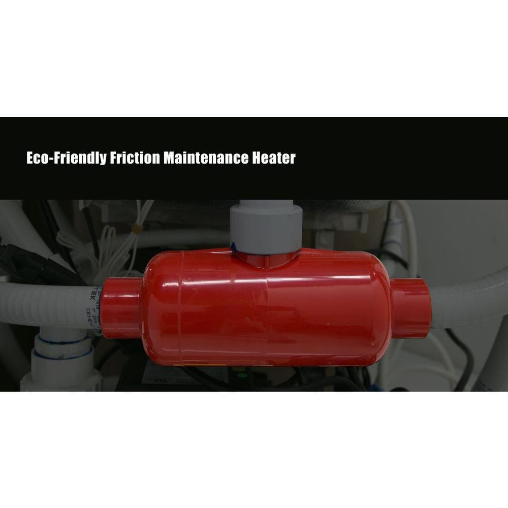 • Friction heater maintains water temperature for extended warm and comfortable bathing with no extra power needed to operate