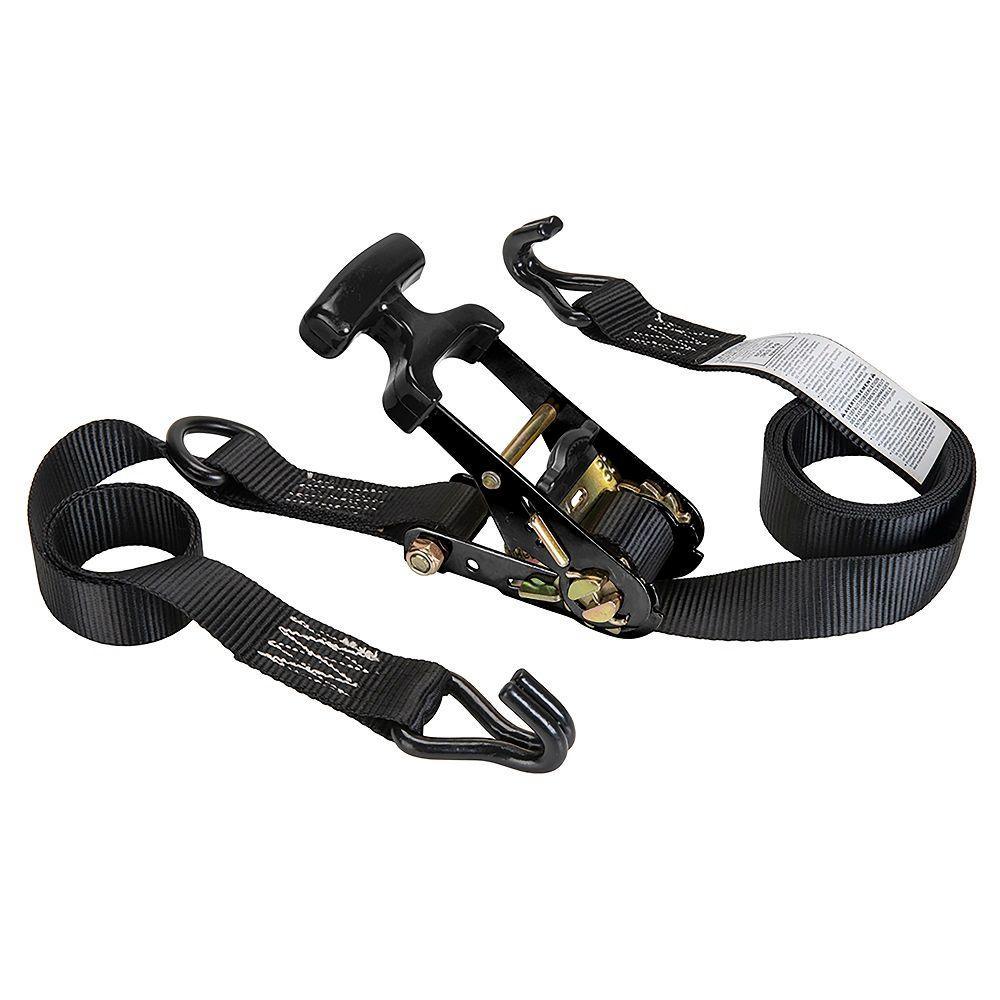 Keeper Performance Engineered 8-1/2 in. x 1-1/4 in. T-Handle Ratchet Tie-Downs provide a safer, more efficient alternative to rope and other inferior cargo securing methods. Mid-sized ratchet tie-downs with 800 lbs. Working Load Limit and 2,400 lbs. Break Strength is perfect for securing loads with pickup trucks and utility trailers. For demanding conditions, ratchet tie-downs are ideal because they maximize tension. The design of T-handle ratchets puts safety and security first with a spring-loaded release that ensures the ratchet will never open accidentally. Vinyl-coated Double J-Hooks are rust resistant for increased life and Hi-Test webbing resists rot and abrasion. Keeper Ratchet Tie-Downs are an ideal solution for everyday mid-sized load security.