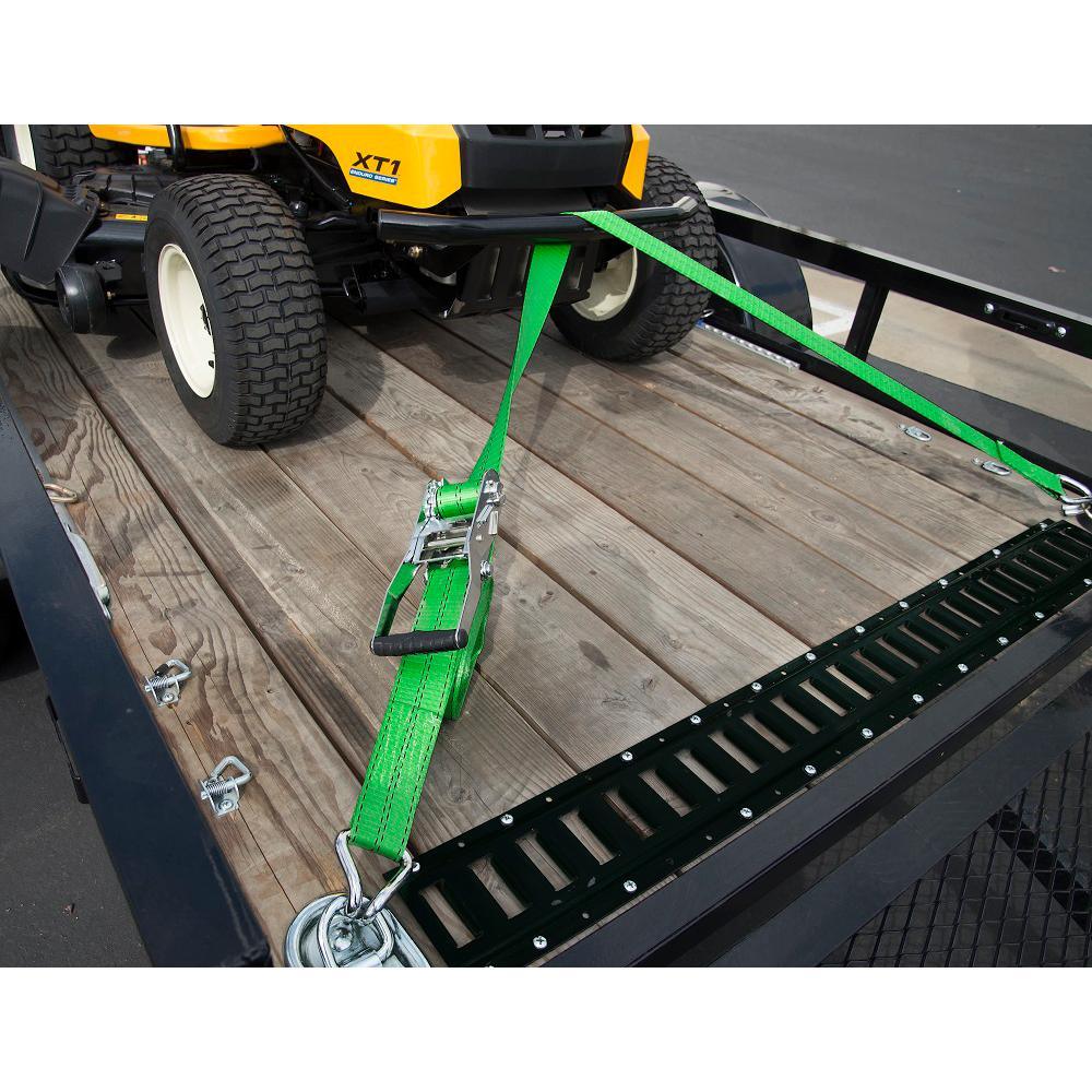 Keeper 30 ft. x 2 in. heavy duty ratchet tie-downs are engineered to meet D.O.T., California Highway Patrol and Web Sling Association standards, making them the ideal choice for industrial cargo control. Keeper tie-downs are appropriate for a wide variety of applications and a Safety First approach delivers outstanding reliability in every circumstance. Hi-Test webbing is abrasion-resistant, won't rot or mildew and maximizes strength while remaining lightweight and transportable. Easy to use ratchet handles and chrome J-hooks allow for secure, high-tension transport, making ratchet tie-downs perfect for your large, demanding cargo needs.