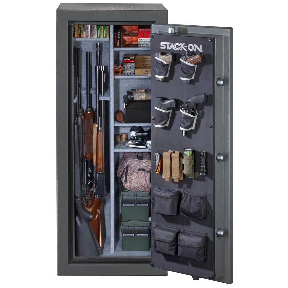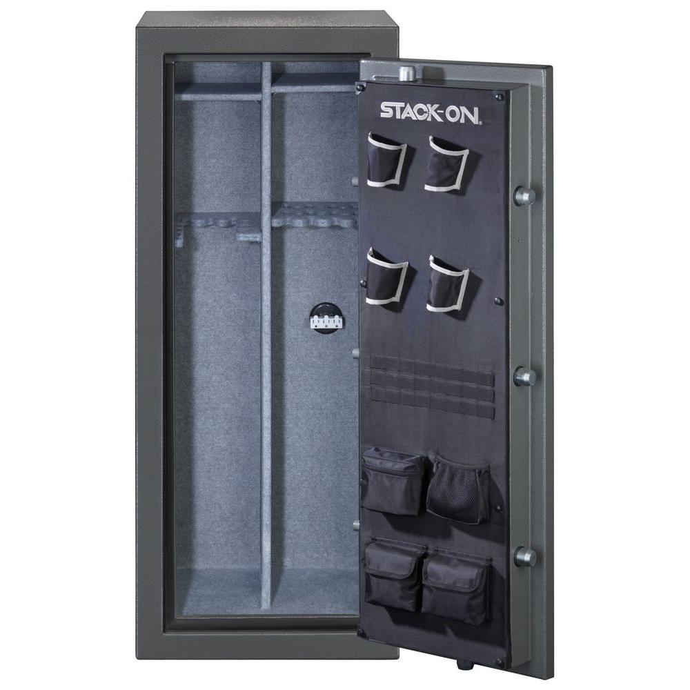 Designed to store MSRs, Ars and long guns, this 24-Gun Fire/Waterproof Combination Lock Safe is the perfect addition to your home. Each Safe features height-adjustable carpeted barrel rests that provide you with plenty of space to safely store your guns. The safe is waterproof in up to 2 ft. of standing water for up to 72 hours and fire resistant up to 1400 degrees F for up to 75 minutes.