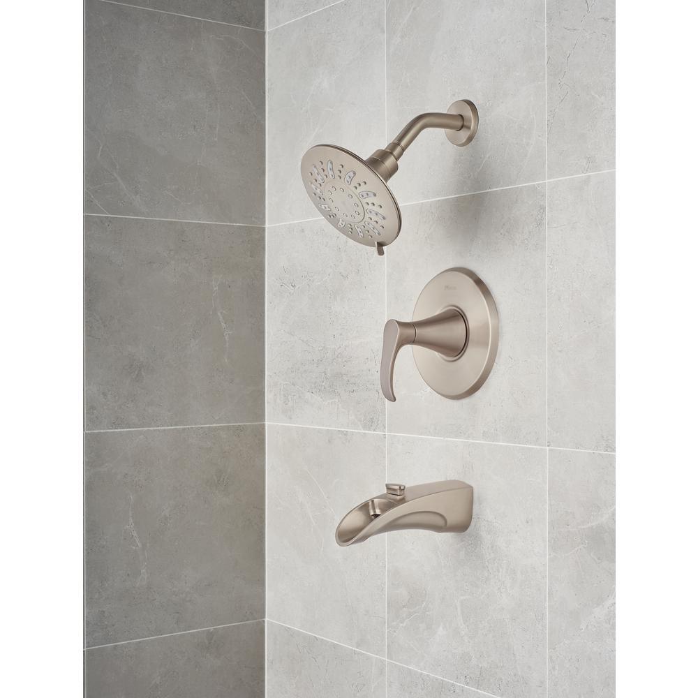 • Includes showerhead, shower arm, flange, valve, handle, tub spout, installation hardware and step by step instructions