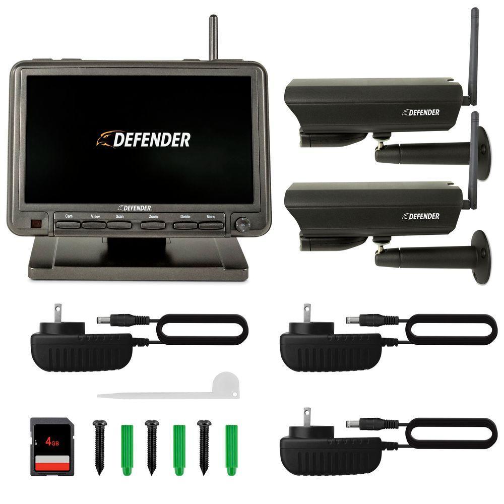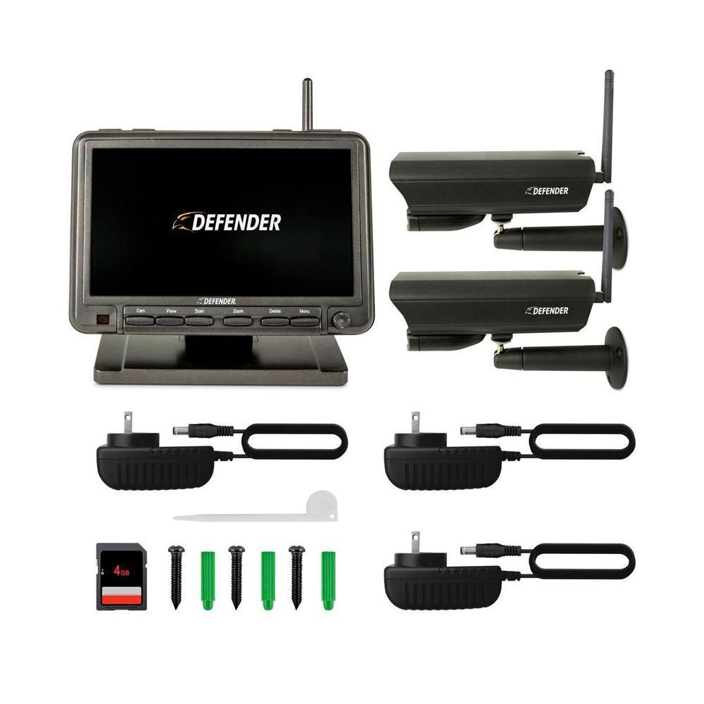 Defend your home or business with this PHOENIXM2 Digital Wireless 7 in. Monitor DVR Security System. The plug and play wireless system is easy to set up and can record audio/video footage using a standard MPEG-4 compression. Each set includes a 8GB SD card that can capture up to 350-minutes of footage. Includes a night vision mode that allows you to see up to 40 ft. away in total darkness.