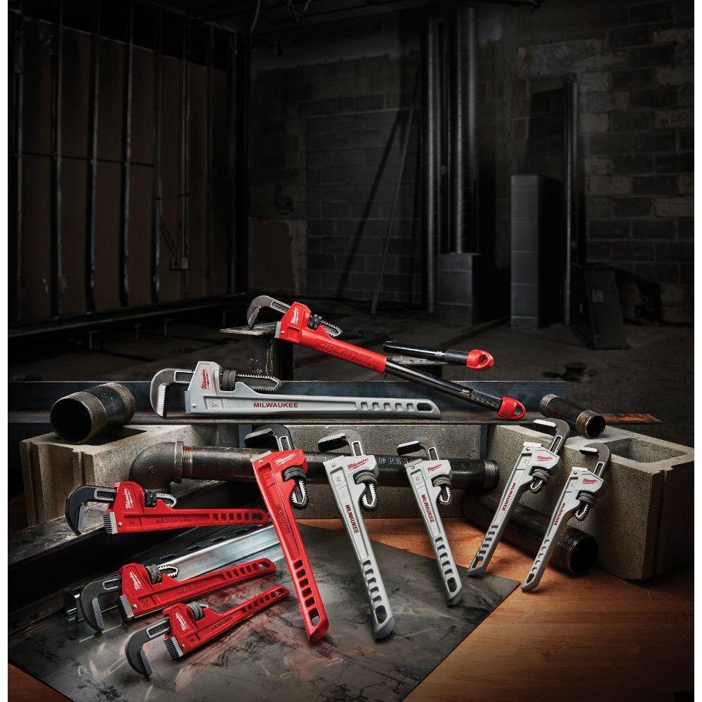 Milwaukee 12 in. Steel Pipe Wrench has been designed from the ground up to offer maximum productivity to the professional user. The 12 in. Steel Pipe Wrench features and overbite jaw design offering the largest gripping surface. Dual coil springs offer maximum durability and tool life and the ergonomic handle form has been designed for maximum comfort and wont dig into the palms. Through hardened jaws deliver increased grip and tooth durability and a tether-ready handle loop makes the Milwaukee 48-22-7112 perfect for the toughest of jobsites. Milwaukee stands behind their product and offers a Limited Lifetime Warranty with all pipe wrenches.