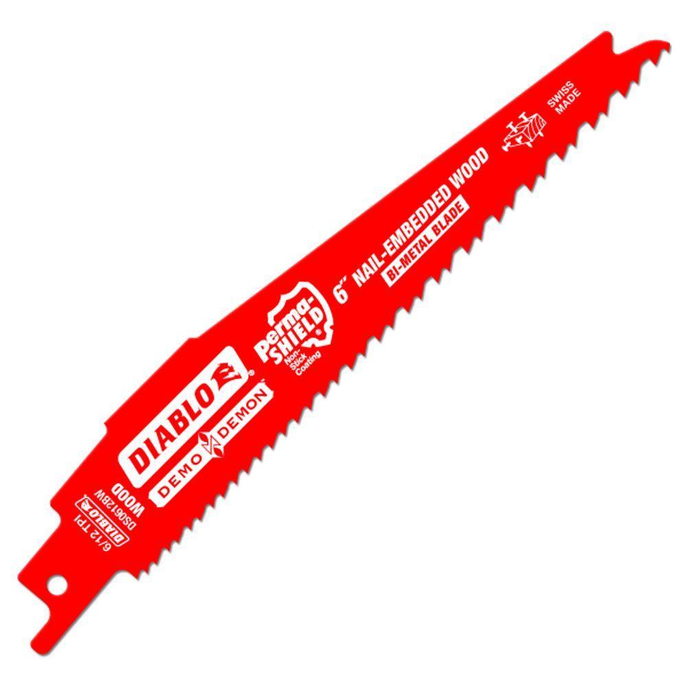 Rip through nail-embedded wood with gently applied pressure using these Diablo Demo Demon Reciprocating Saw Blades. Leveraging patented variable tooth technology, the 6 in. x 6-12 TPI blades bite into lumber to make quick work of teardowns and demolition projects. Bi-metal construction gives the blades utmost durability and a PERMA-SHIELD coating reduces drag for smooth operation in rugged applications. Up to 20% savings when purchasing this 15-piece pack.