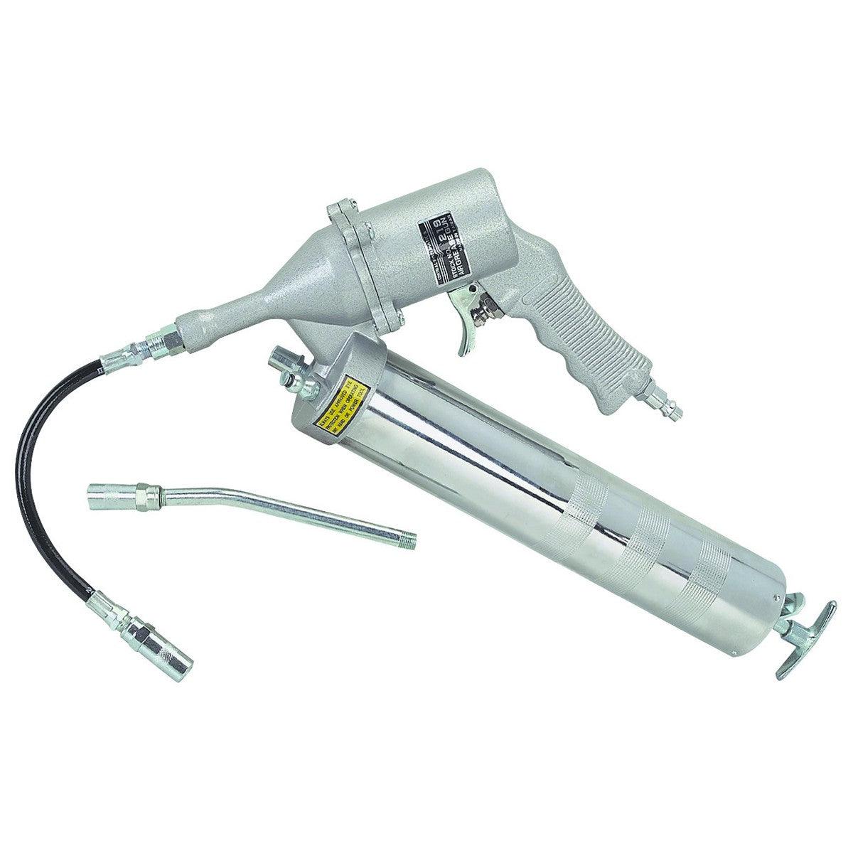 This air grease gun is a must-have for working on vehicles, agricultural machinery, and industrial equipment. One-hand pistol grip for easy use combined with trigger-pull regulated grease delivery. Comes with a 6 in. extension for added reach. Can be loaded with bulk or cartridge grease