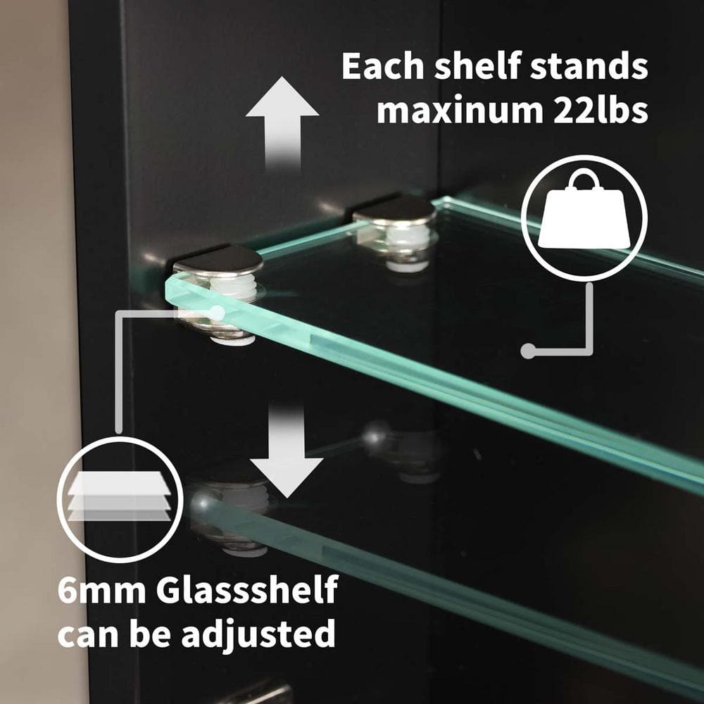 Adjustable Shelves: Customize storage with adjustable glass shelves for organizing toiletries and bath essentials.