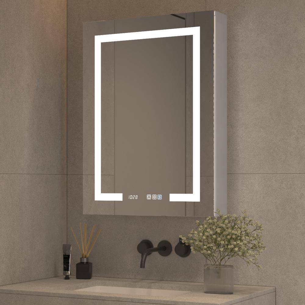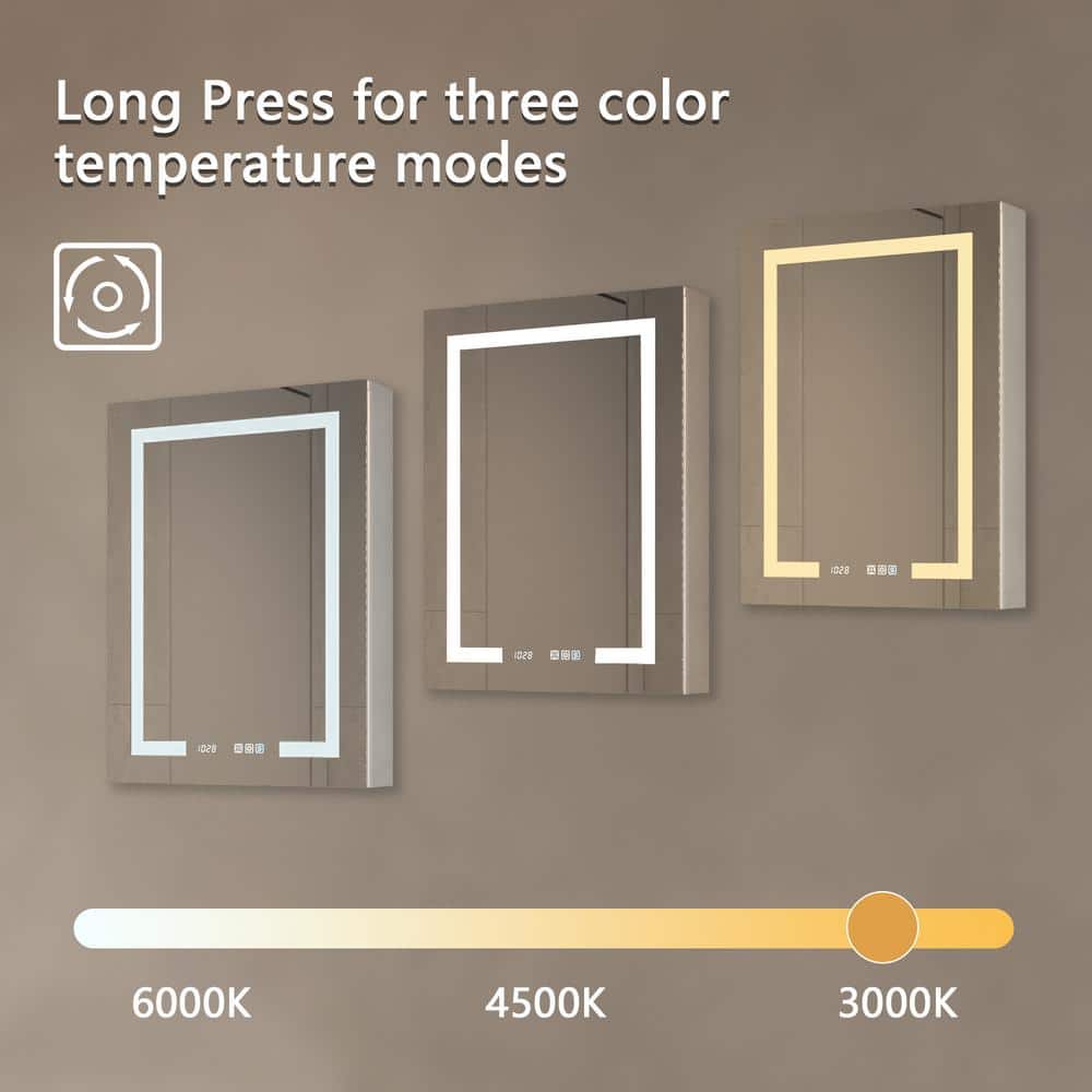 Elevate your bathroom storage with this sleek aluminum medicine cabinet featuring a mirrored door. Perfect for space-savvy setups, this cabinet integrates style and functionality with adjustable shelves and LED lighting. It's designed for easy installation and offers a defogging feature to ensure perfect clarity each morning.