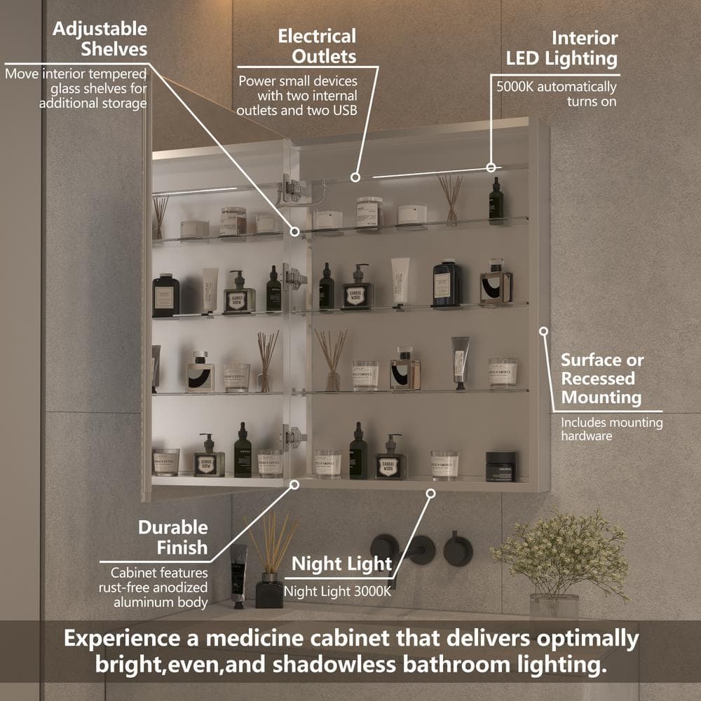 Transform your bathroom into a luxurious retreat with this stunning aluminum medicine cabinet. The sleek lines and sophisticated finish provide a contemporary touch that elevates any space. With adjustable lighting and a defogging mirror, it not only offers practical storage but enhances your daily routine with convenience and style. Set this piece above a chic vanity or against a rich colored wall for a striking aesthetic that champions modern living.
