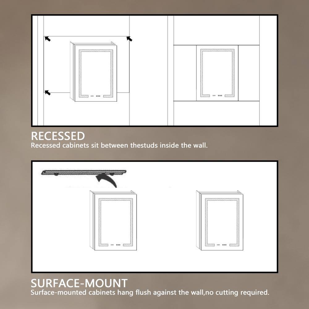 A: Yes, this medicine cabinet offers versatile installation options and can be mounted either recessed into the wall or surface-mounted, depending on your preference.