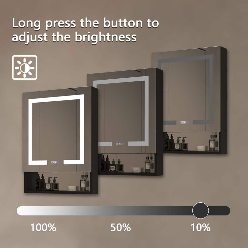 Enhance your bathroom with this cutting-edge LED medicine cabinet, designed to offer sophistication and functionality. Featuring dimmable lighting and a non-fogging mirror, this cabinet seamlessly integrates convenient storage with modern technology. Its durable aluminum construction ensures long-lasting beauty and utility.