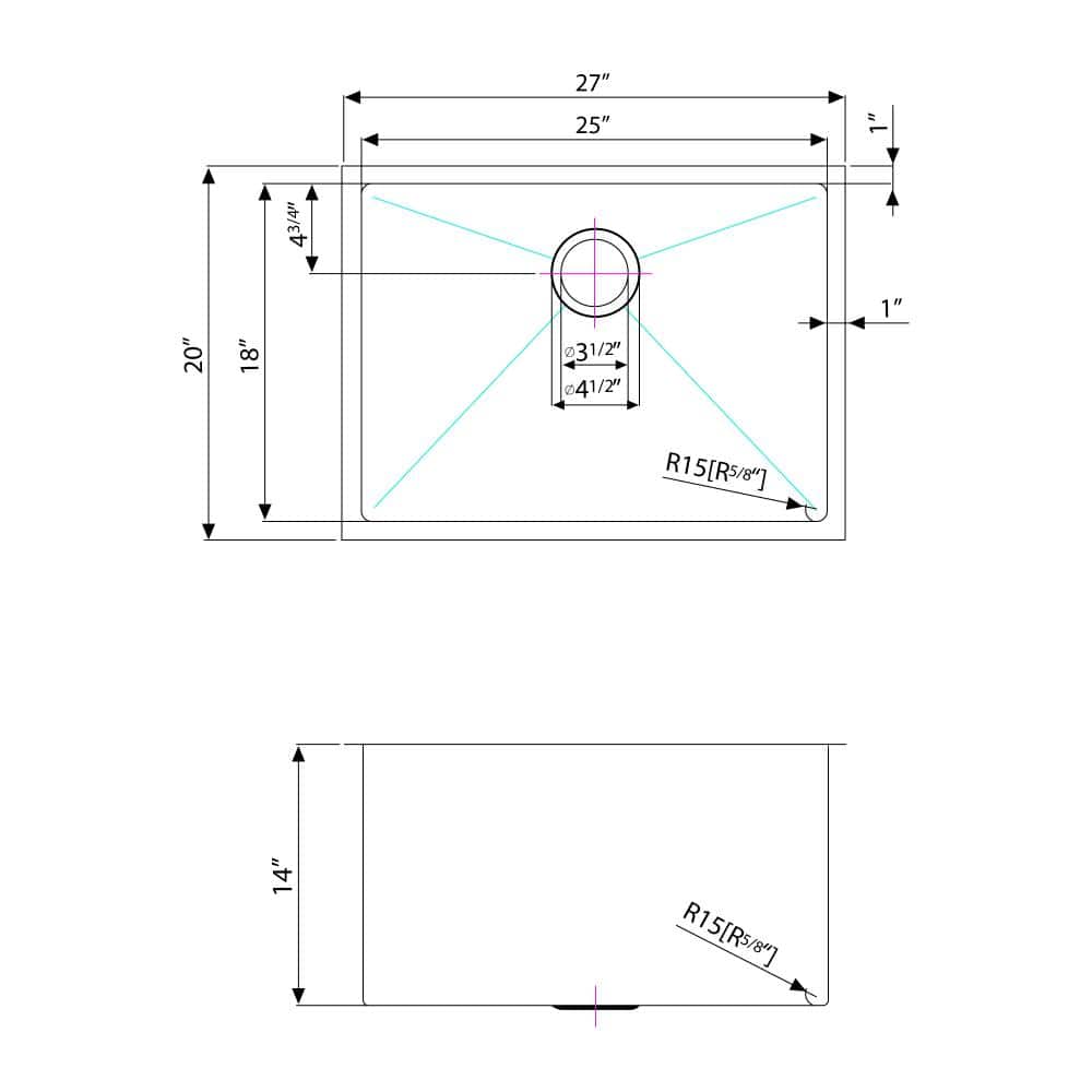 Stainless Steel Undermount Laundry Sink 27x20x14 in 16GS-27602