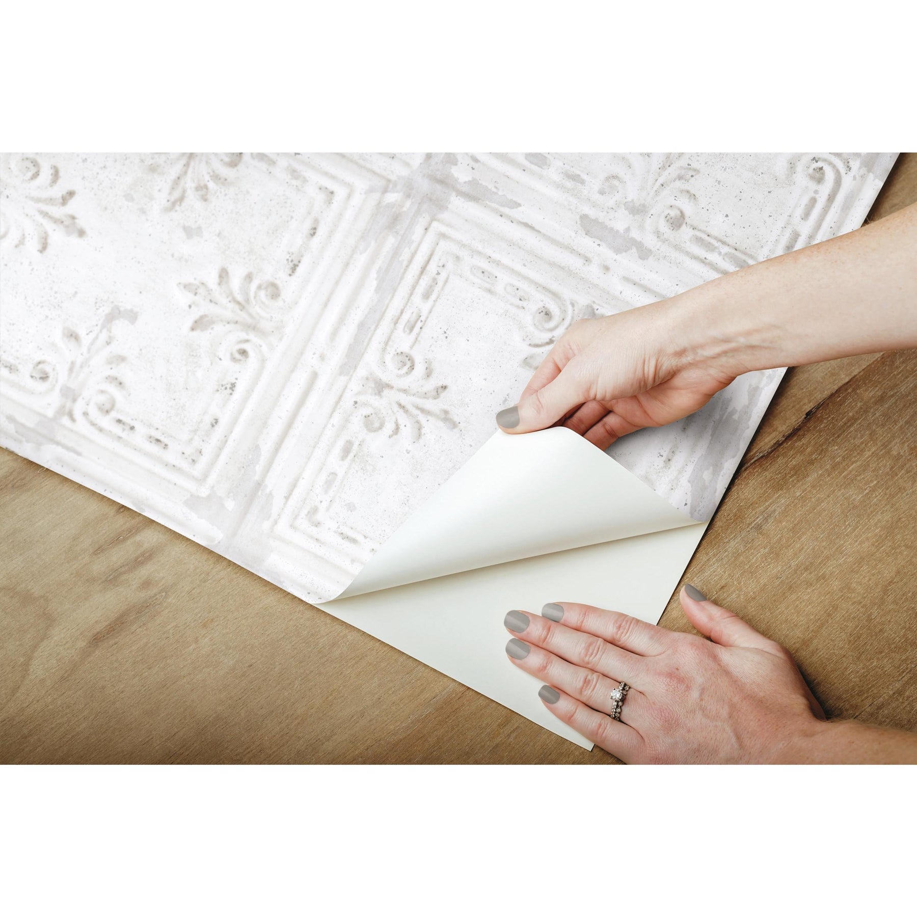 RoomMates Tin Tile White Peel and Stick Wallpaper