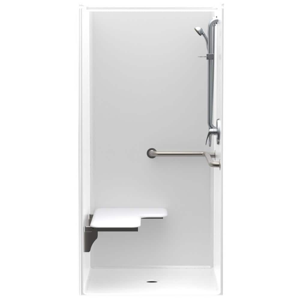 Regular price $1,975.00Aquatic's Accessible AcrylX 36 in. x 36 in. x 75 in. 1-Piece Shower Stall with Left Seat & Center Drain in White offers a barrier-free solution for those with limited mobility. Crafted with AcrylX applied acrylic and strengthened with Armorcore, this shower stall is designed to provide comfort, safety, and durability. The 1-piece design allows for easy installation in new construction projects, with a pre-leveled base and no interior threshold. This unit features a left-hand fold up seat and a stainless steel L-shaped grab bar for added stability. The pressure balancing mixing valve and hand-held shower with slide bar assembly offer convenient, accessible bathing. With a center drain and a high-gloss, truer white finish, this shower stall is both functional and aesthetically pleasing. A lifetime limited residential warranty (or a 30-year warranty for commercial use) backs the quality and reliability of this product.