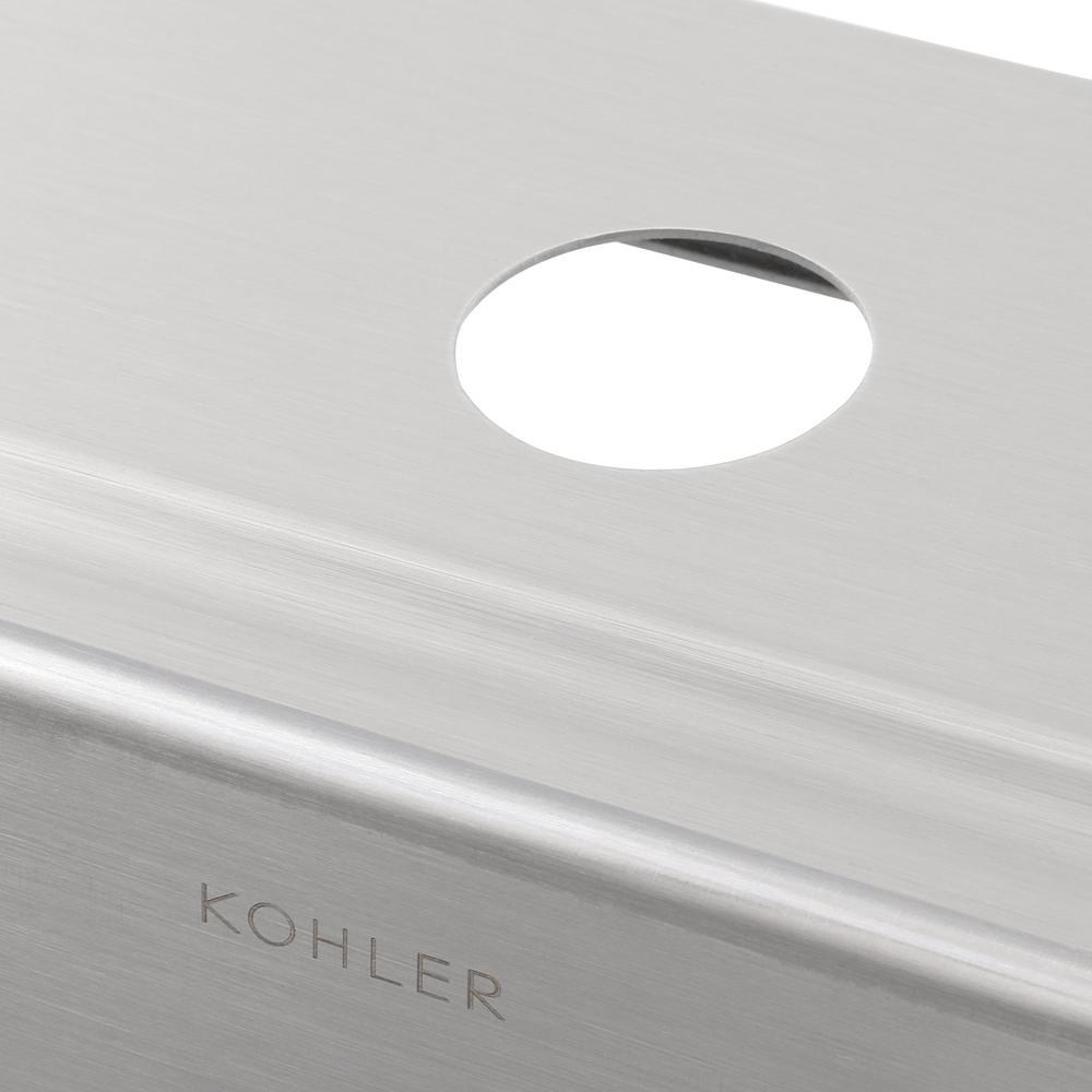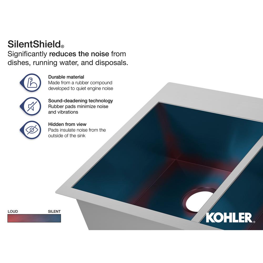 Blending with a variety of kitchen styles, this Verse stainless-steel sink offers a wide, deep bowl for ample workspace. The low-profile rim simplifies cleanup, allowing you to sweep crumbs and liquid into the sink and out of sight. An engineered sound-absorption system significantly reduces disposal and dishwashing noise for a quieter kitchen environment.