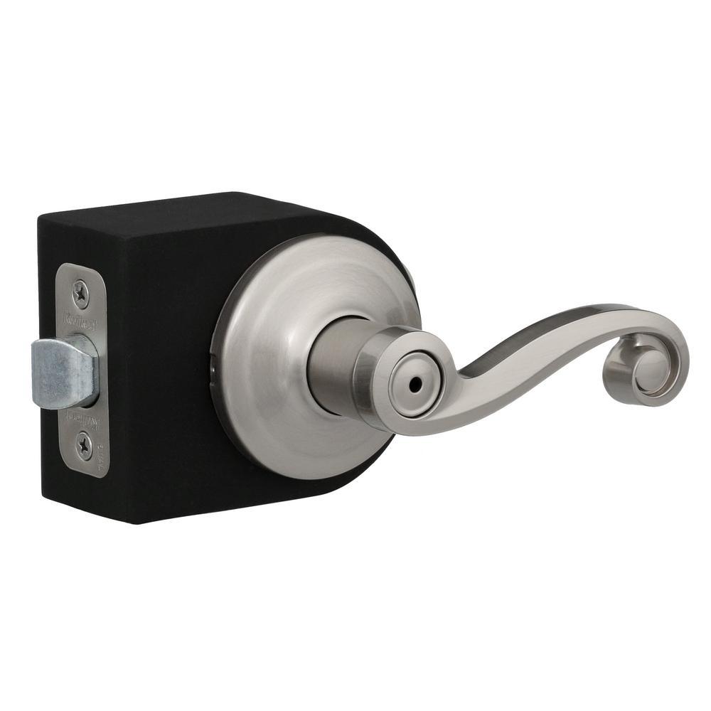 Step up to designer styles and superior security with Kwikset Signature Series products. The elegant scroll of the Lido complements a variety of homes and makes a stylish design statement. This privacy knob/lever is best used in interior bed and bath applications where privacy is required. Both knobs/levers are locked or unlocked by turn piece inside. The outside knob/lever can be unlocked by an emergency key. The crisp, clean appearance of the Satin Nickel finish adds to the overall look of the product and brings a modern feel.