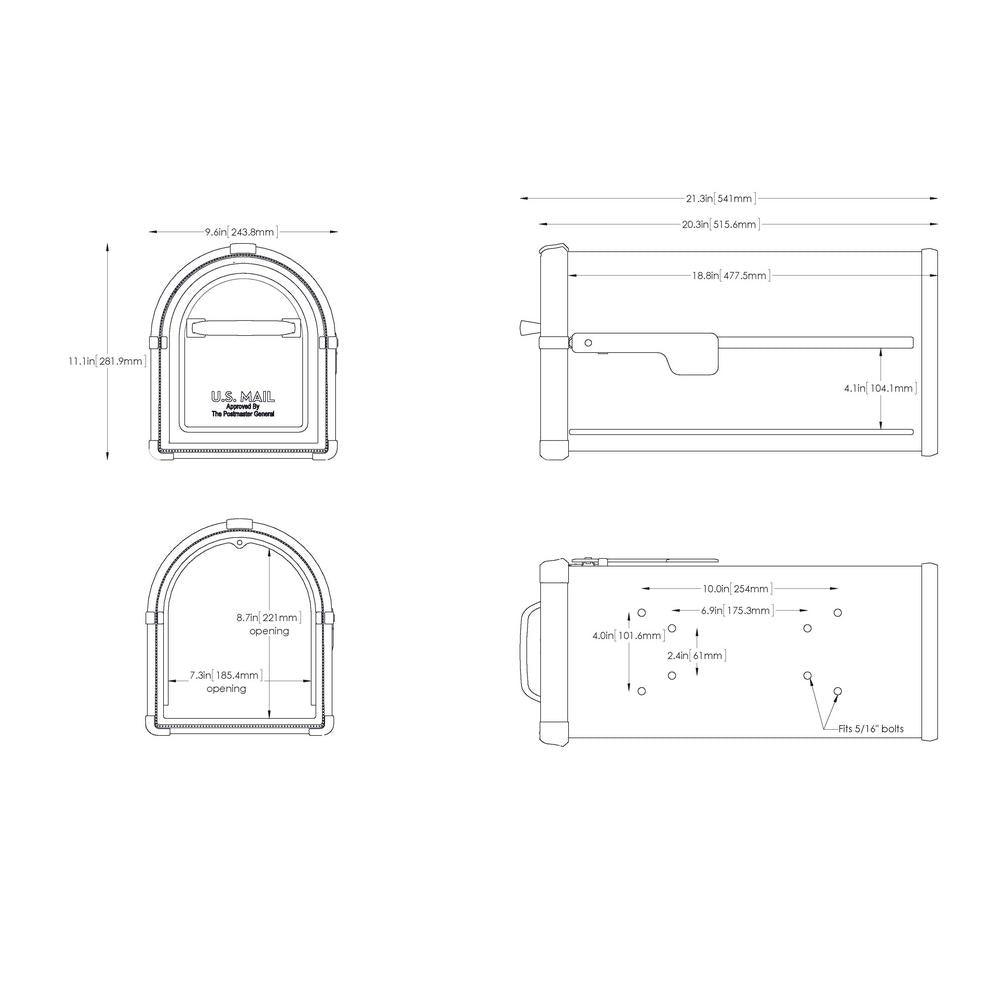 • Mailbox is 9.6 in. W x 11.1 in. H x 21.3 in. D
