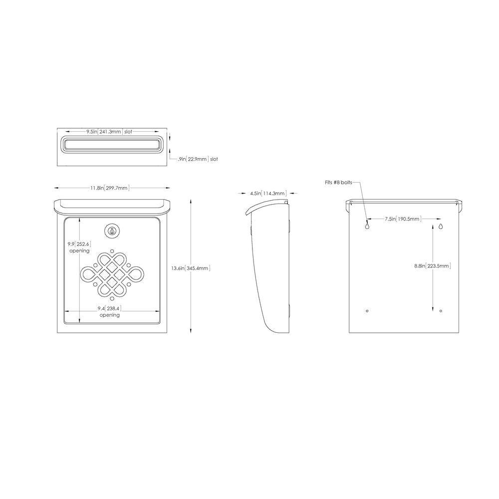• Mailbox is 11.8 in. W x 13.6 in. H x 4.5 in. D