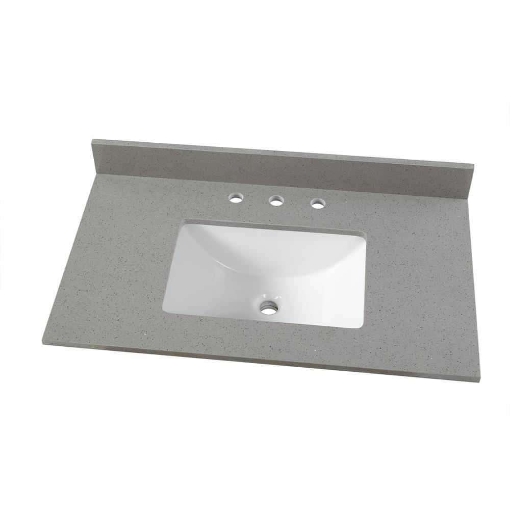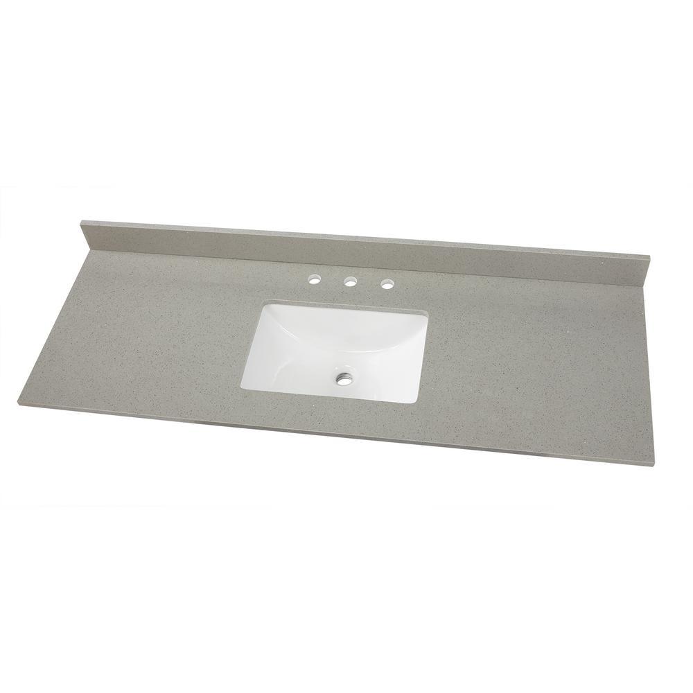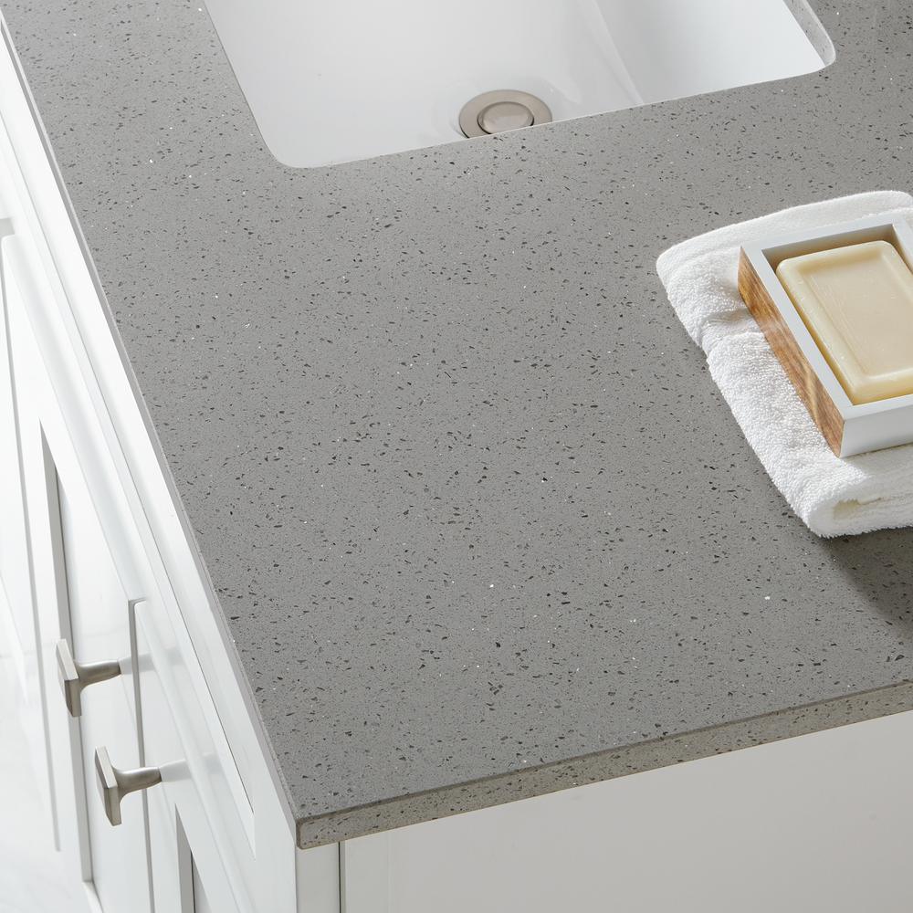 Transform your bathroom with a beautiful engineered quartz vanity top with pre-attached under-mount vitreous china bowl. Perfect for quick and easy remodels. This vanity top is easy to install and fits directly on any standard 48 in. vanity cabinet. It is sure to add a stylish, finishing touch to your bathroom.