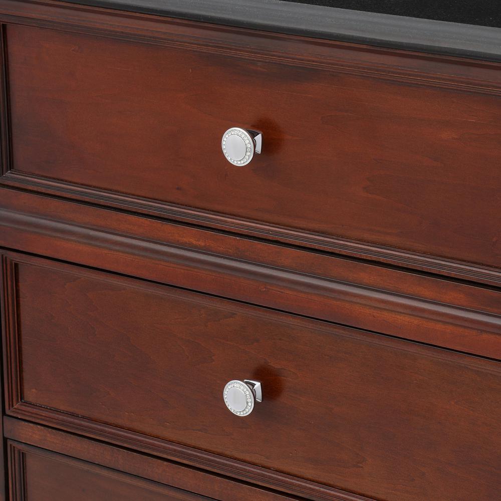 This knob pairs nicely with the Bellissima pull (item# 4111) and is a great addition to any room. The variety of finishes and crystal colors makes the Isabel versatile and easy to pair with any room. This knob is constructed from a zinc alloy and is adorned with Grade A glass crystals.