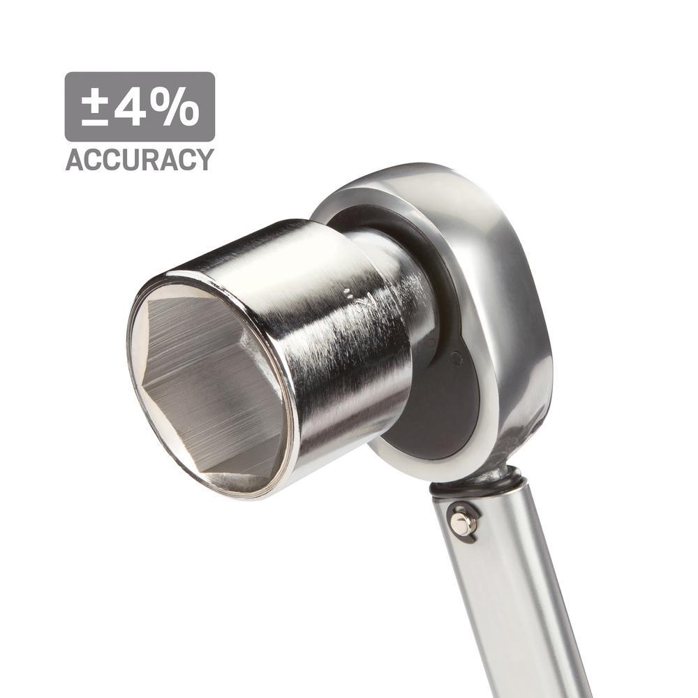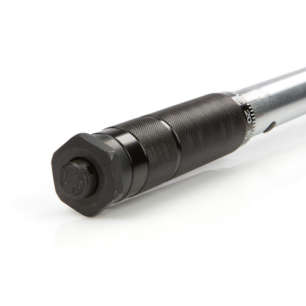 Calibrated to an accuracy of +/- 4%, the TEKTON 3/4 in. Drive Click Torque Wrench lets you work with confidence, eliminating guessing and the common tendency to overtighten fasteners. Correctly tightening fasteners to vehicle or equipment torque specifications ensures parts are properly secured without being damaged. Simple and easy to use, this wrench has a reversible ratcheting head that drives fasteners in both directions and measures torque in the clockwise direction. To measure torque, set the desired value on the handle scale (foot pounds or Newton meters) and begin tightening the fastener. When the preset torque value is reached, a reliable mechanical operation inside the handle produces a click you can hear and feel, alerting you to stop applying force. Built for consistent performance and years of dependable service, the mechanical design does not need batteries and the all-steel construction has no plastic parts to break or wear out. IMPORTANT: This wrench is shipped pre-calibrated and ready to use. To help maintain calibration, store at its ARB265Wt setting of 50 ft./lb. (67.8 Nm) when not in use. Be sure to read and understand the operator's manual, including all safety information, before first use.