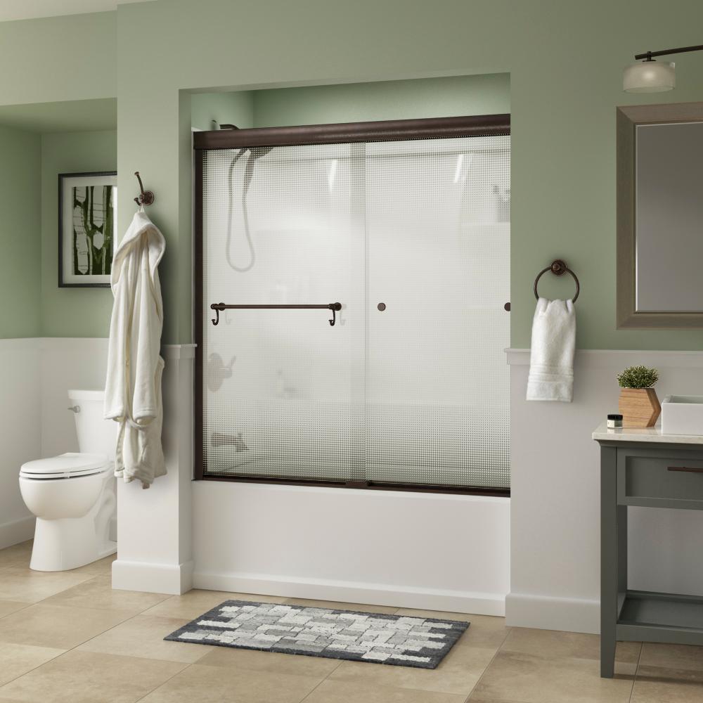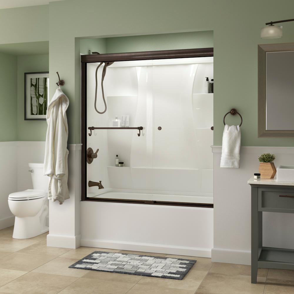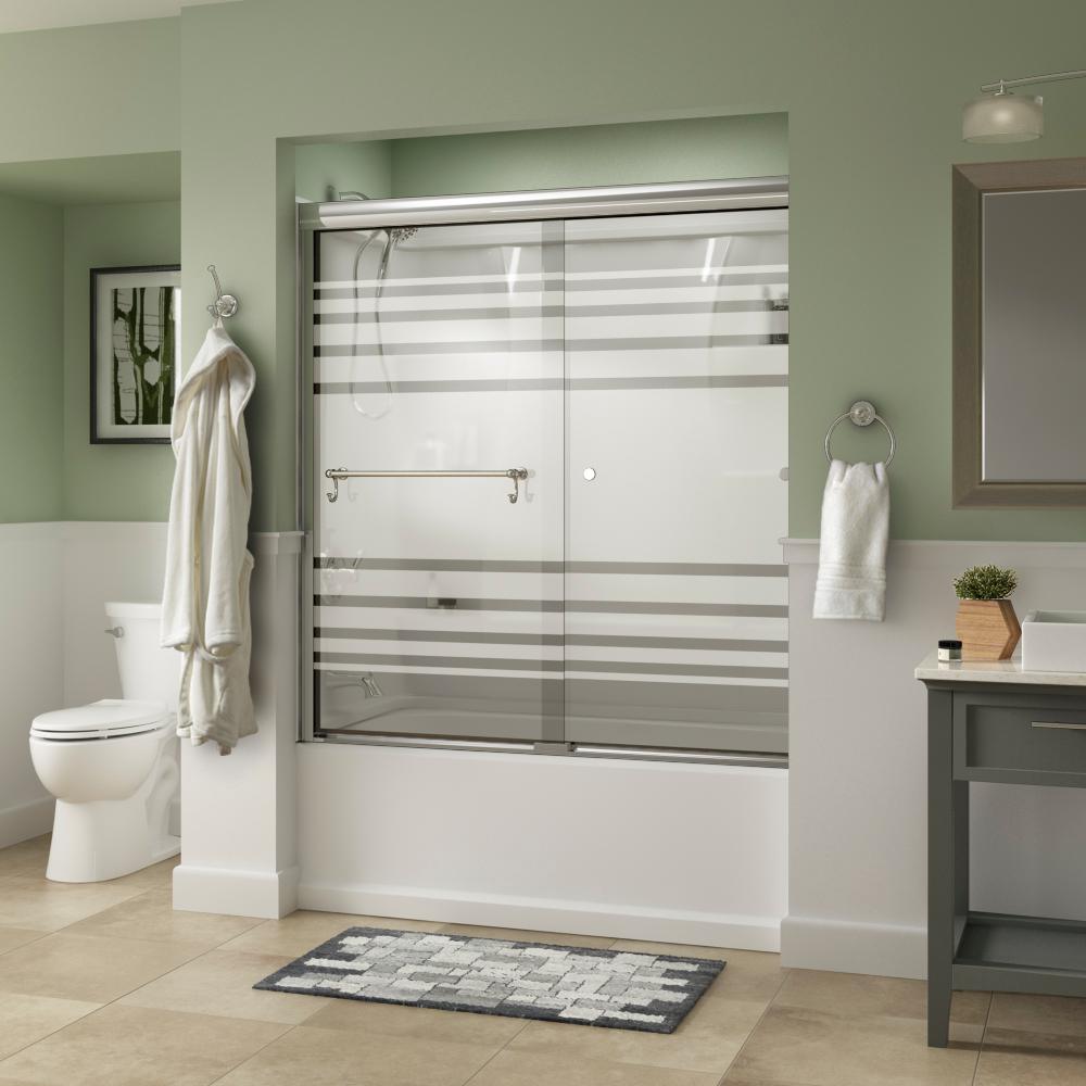 • Traditional sliding bathtub door designed to accommodate out-of-plumb (uneven, not vertically level) conditions totaling 3/8 in.