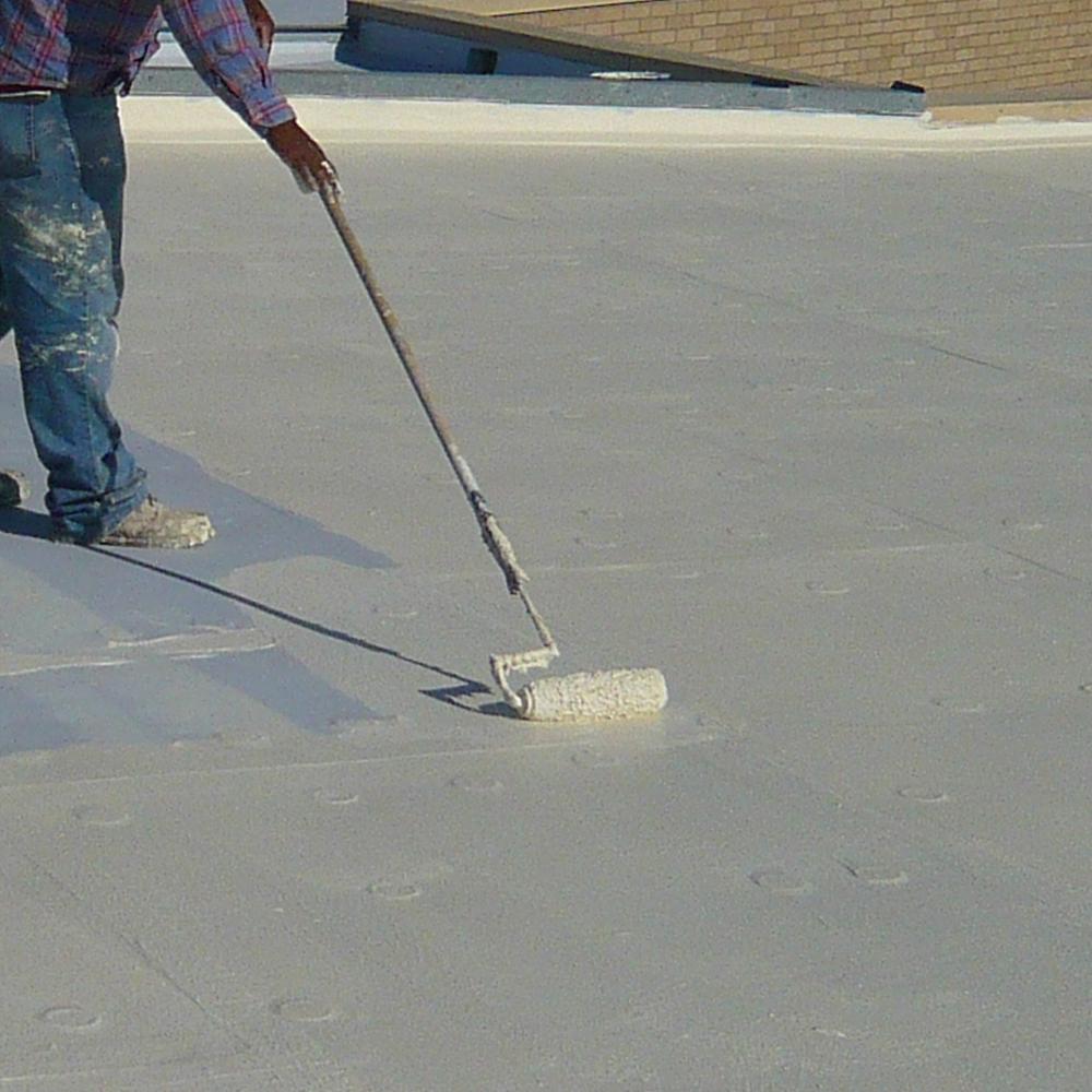 United Coatings Roof Mate Top Coat is a water-based acrylic top coat and is part of the Roof Mate Coating System. It is the top layer applied over Roof Mate Base Coat and forms a waterproof elastomeric, monolithic membrane, helping to provide protection from normal weathering, aging and ultraviolet exposure. Roof Mate Top Coat is made with premium-quality acrylic resins are combined with an effective biocide package and non-migrating fire retardants, resulting in superior durability, weatherproofing, ultraviolet resistance, algae/mildew resistance and fire retardanct Roof Mate Top Coat is a highly reflective, permanently flexible breathable membrane, allowing moisture vapor from the substrate or building interior to escape while remaining impervious to mass water penetration from the exterior. It is also effective in sealing and encapsulating galvanized metal roofs, helping to prevent residual zinc run-off.