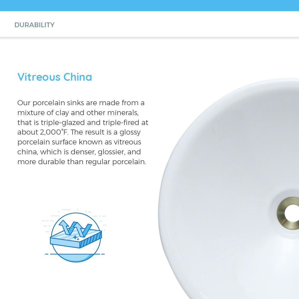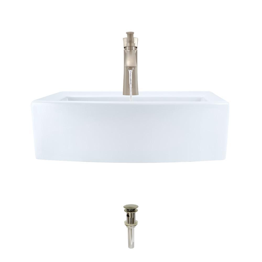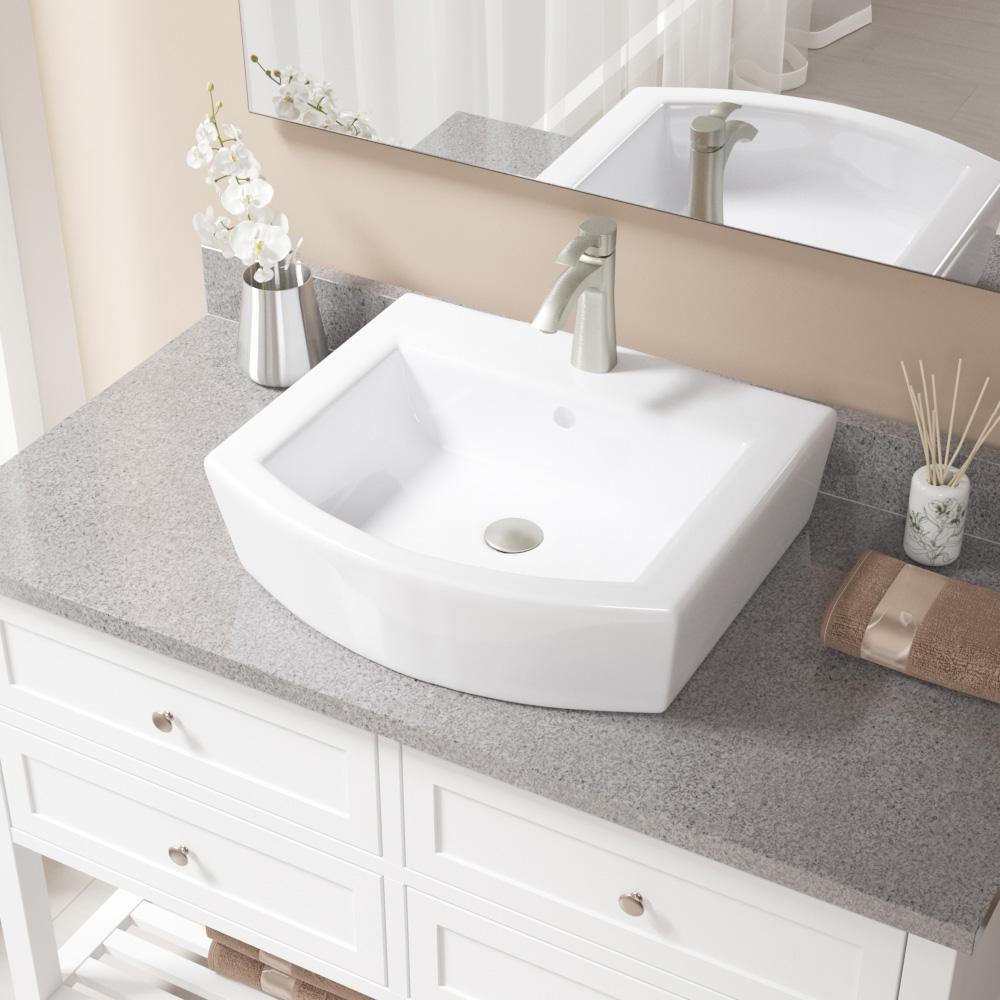 Porcelain Vessel Sink in White with 725 Faucet and Pop-Up Drain in Brushed Nickel