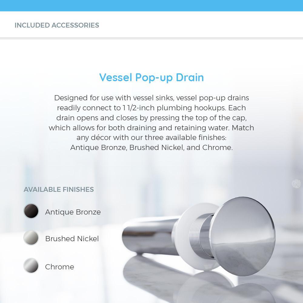 • Ensemble includes: vessel sink, vessel faucet, and pop-up drain