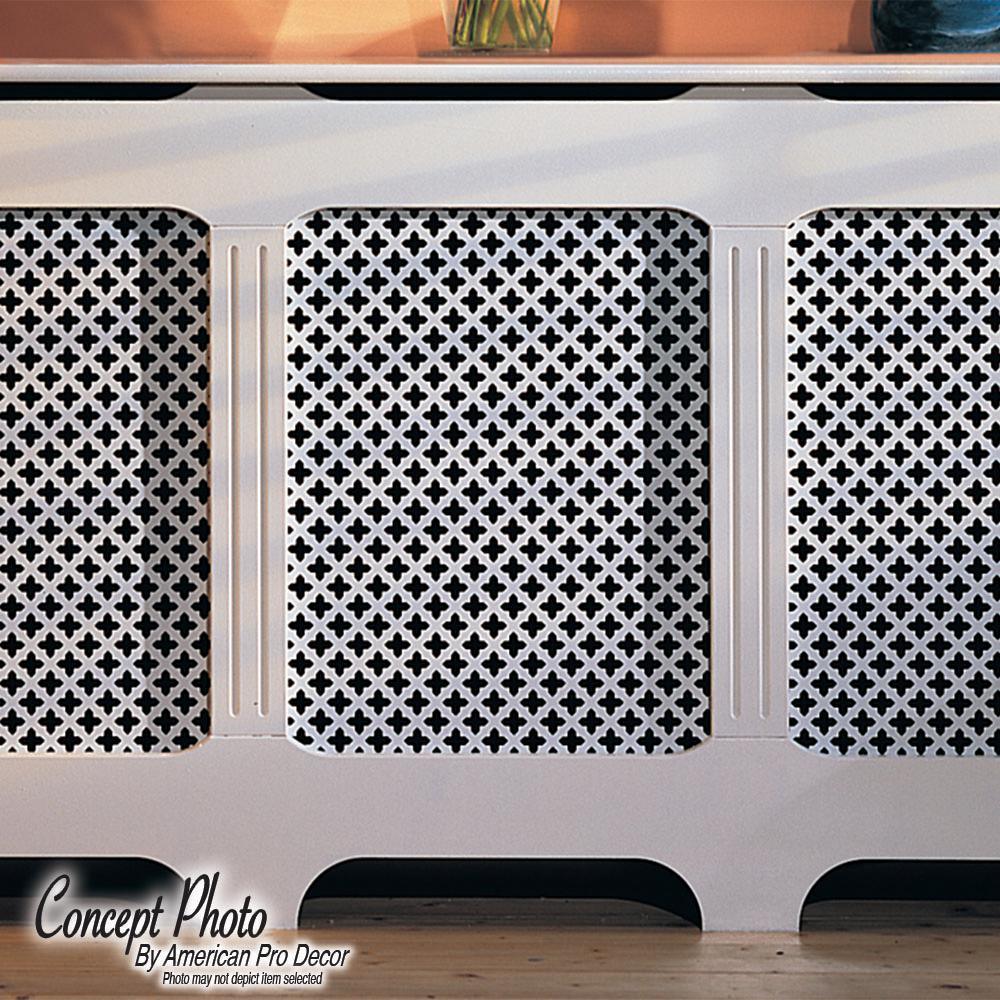 Create a unique, simple and elegant design on any panel application adding style and beauty. Our decorative MDF Screening Panels are precisely perforated giving clean edges and finer definition. American Pro Decor's MDF Screening Panels provide a versatile and attractive option of concealing air conditioning vents, radiators cabinets and any other decorative elements on Furniture such as cabinet doors and drawer fronts. Our MDF Screening Panels are also used on display fixtures, Ceiling Panels, Interior Walls and door inserts, room dividers. Our MDF decorative Screening Panels come in natural unfinished MDF. Panel must be primed before painting. All panels are 2 ft. H x 6 ft. W x 1/8 in. thick and can easily be cut to size to accommodate, decorate and fit any panel opening. The open areas provide the best option for air flow when needed.