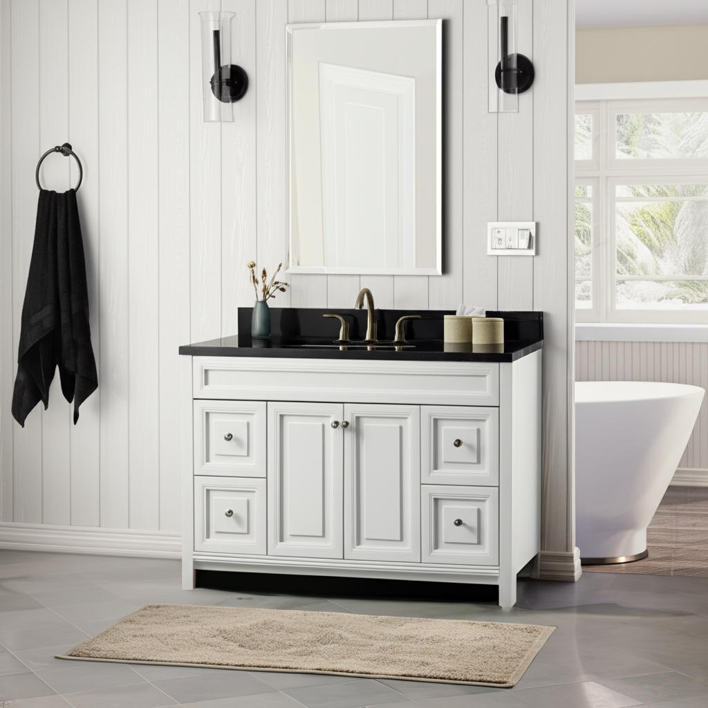 - Functional Features: Adjustable hinges for easy door alignment and partial backboard cutout for plumbing access.