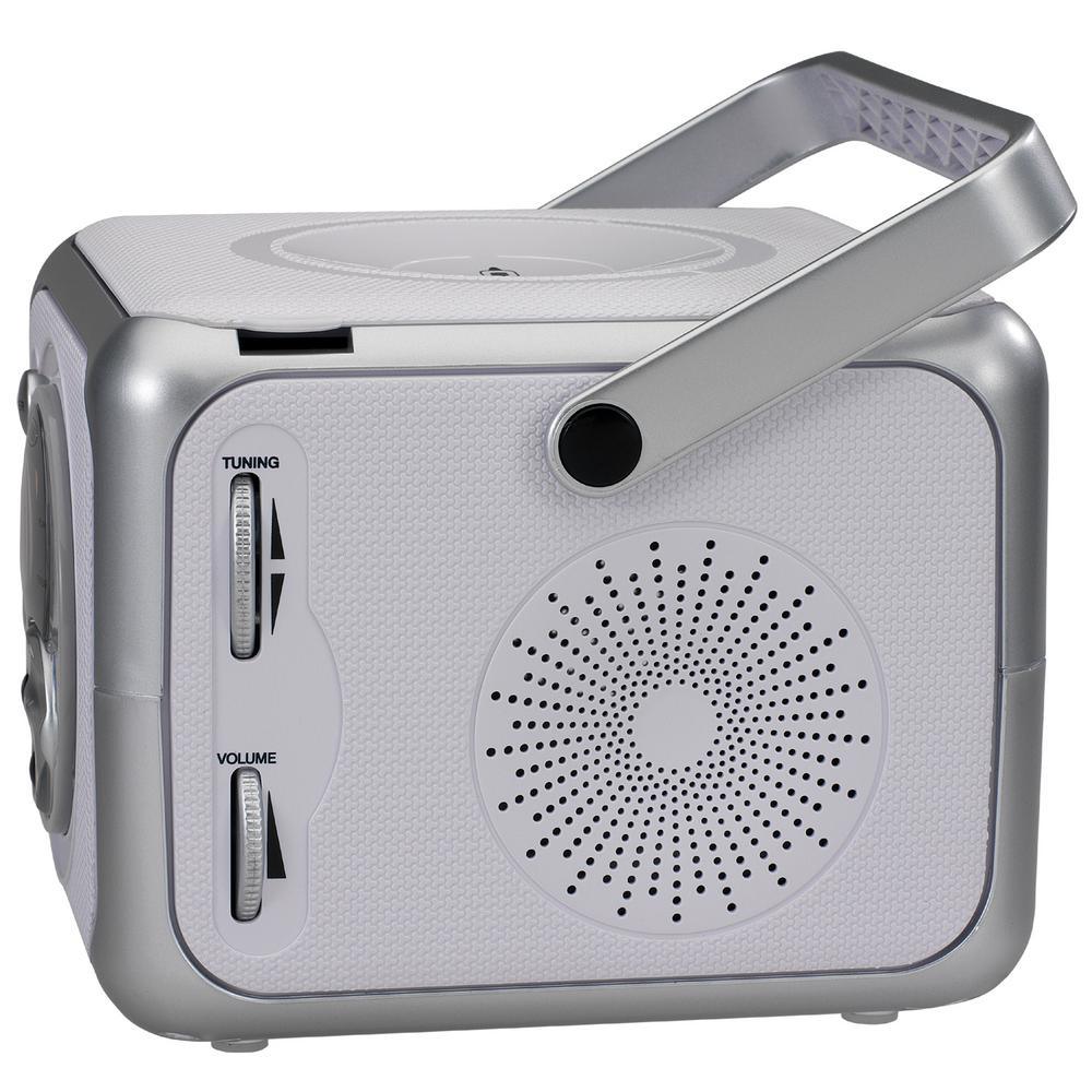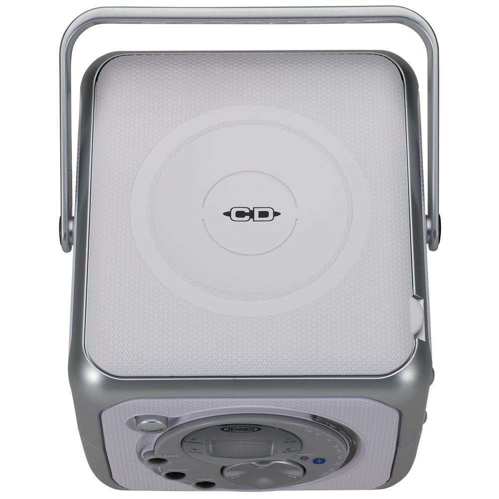 Experience great music with the JENSEN CD-555, a compact portable stereo music system with Bluetooth connectivity, a top loading CD player that plays CD-R/RW discs and FM radio. Link up your Bluetooth device, and wirelessly play your music from up to 33 feet away. The unit features easy access front and side mounted controls and an X-Bass button for enhancing the bass effect on anything you play. The CD player features a blue LED track display and all the necessary controls for playing and enjoying your CDs. The unit also has a foldable carrying handle, headphone jack, and auxiliary line-in jack for connecting your iPod, MP3, or other digital audio player. Enjoy powerful, realistic sound anywhere you go with this portable music system.