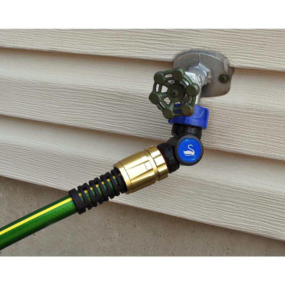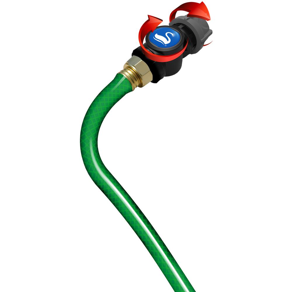 No more kinking. With the Swan Swivel attached to your spigot, it's unique dual 180° and 360° rotation eliminates kinking at the spigot or nozzle. Heavy duty ABS construction. If you have a hose, it must have a Swivel.