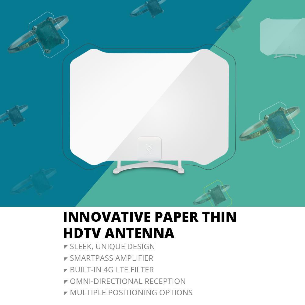 The Antop Paper Thin Indoor HDTV Antenna, AT-133B super slim and Piano White design (less than an inch thick, 0.02 ft.) is aesthetically pleasing and suitable to match a wide range of home decor styles. Its compact size allows you to position the antenna anywhere in your home. The AT-133B supports HDTV, 1080p TV and 4K ULTRA HD and is compatible with TV converter boxes or digital TVs. The number of TV channels and programs that you can receive for free depends on the amount of over-the-air broadcasters in your area. With the Antop AT-133B, there is no monthly fee and no subscription. Just plug into TV, scan channels, then enjoy your TV shows. Antop Technology: An exclusive technology offered by Antop, the inline Smartpass Amplifier's all-in-one design, allows you an easier connection and more possibilities in different receiving ranges. You don't have to hesitate any more on deciding between a short range and long range antenna. Antop's Smartpass Amplifier delivers the correct range for you. Antop was the first antenna manufacturer to include a built in 4G LTE filter. This filter will block all 3G and 4G signals from mobile phones, tablets, wireless networks or mobile phone transmitters to ensure your noise-free digital TV reception.